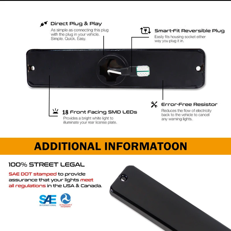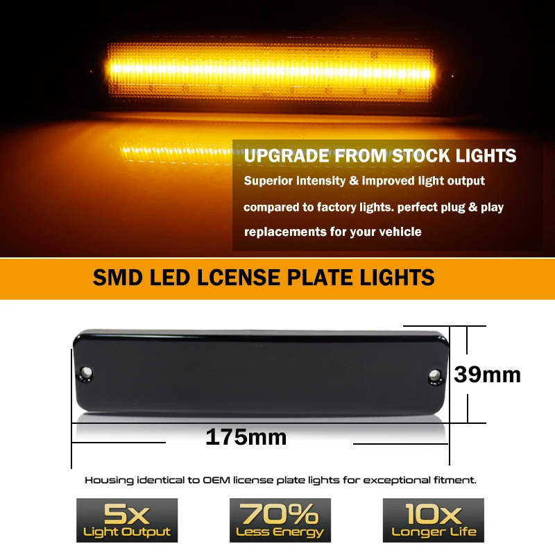 В комплект поставки входит одна пара передних габаритных огней водителя и пассажира с дымчатой крышкой. Каждая деталь питается от 40 шт. высокомощных янтарных SMD светодиодных диодов с супер ярким выходом освещения. Светодиодные боковые габаритные лампы являются прямой установкой plug and play.