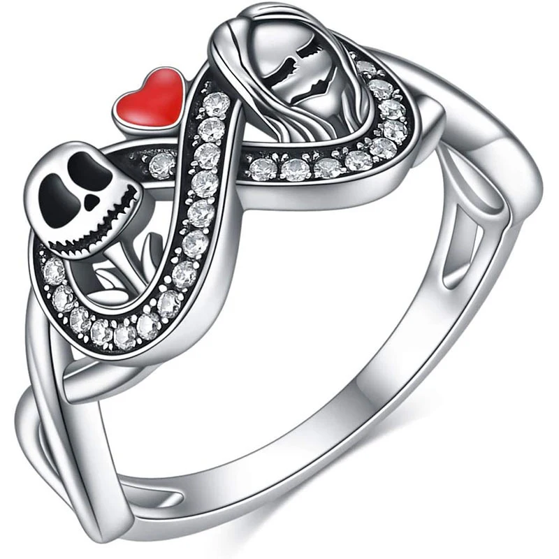 Забавные женские кольца в стиле панк, с красным сердцем, в форме Красного циркония, с черепом, бриллиантами, вечерние аксессуары