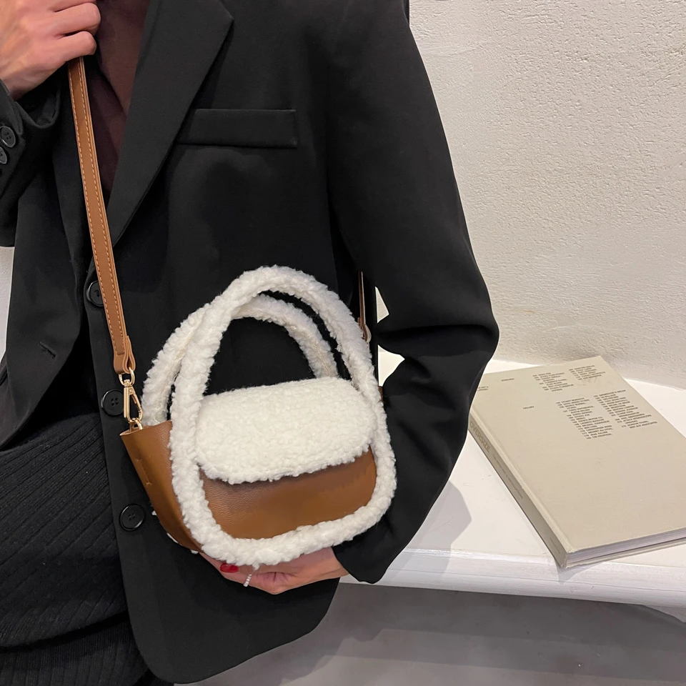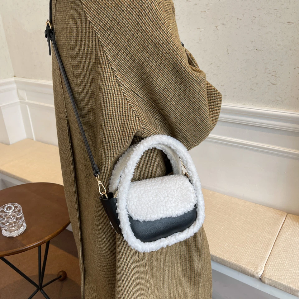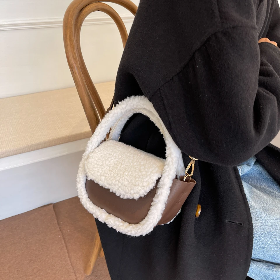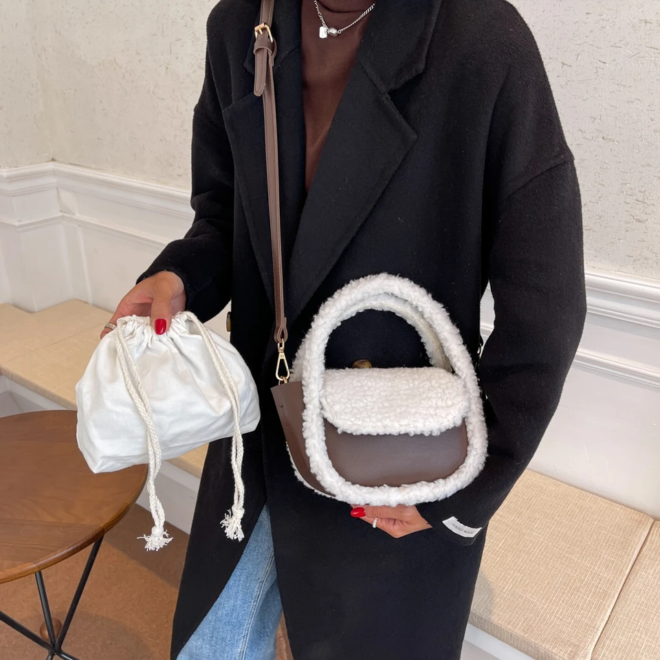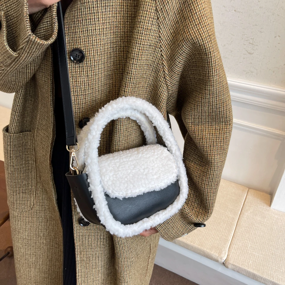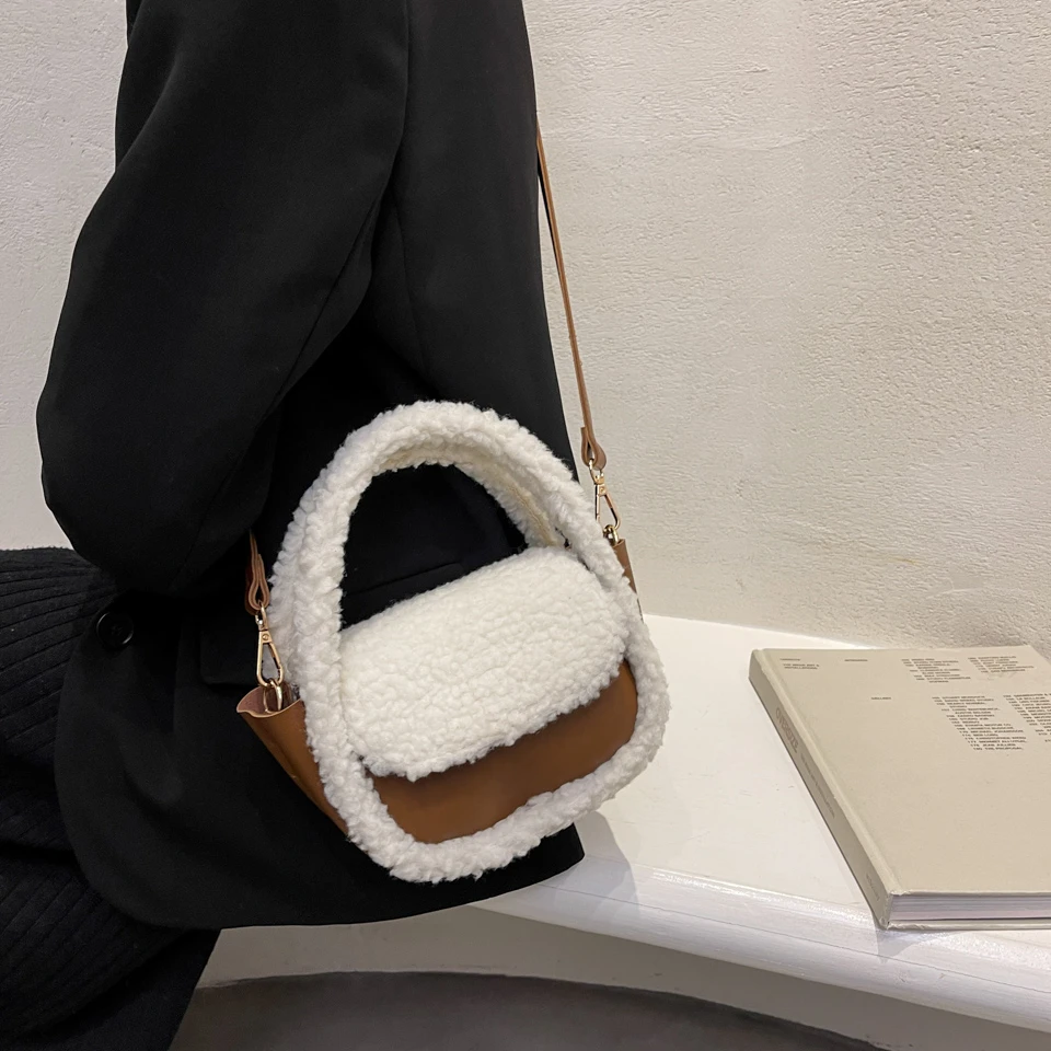Шикарная Пельменная сумка, мягкие пушистые сумки для женщин, зима 2021, плюш + PU, сумка-тоут, меховая сумка с клапаном, корейская мода, меховые сумки на плечо