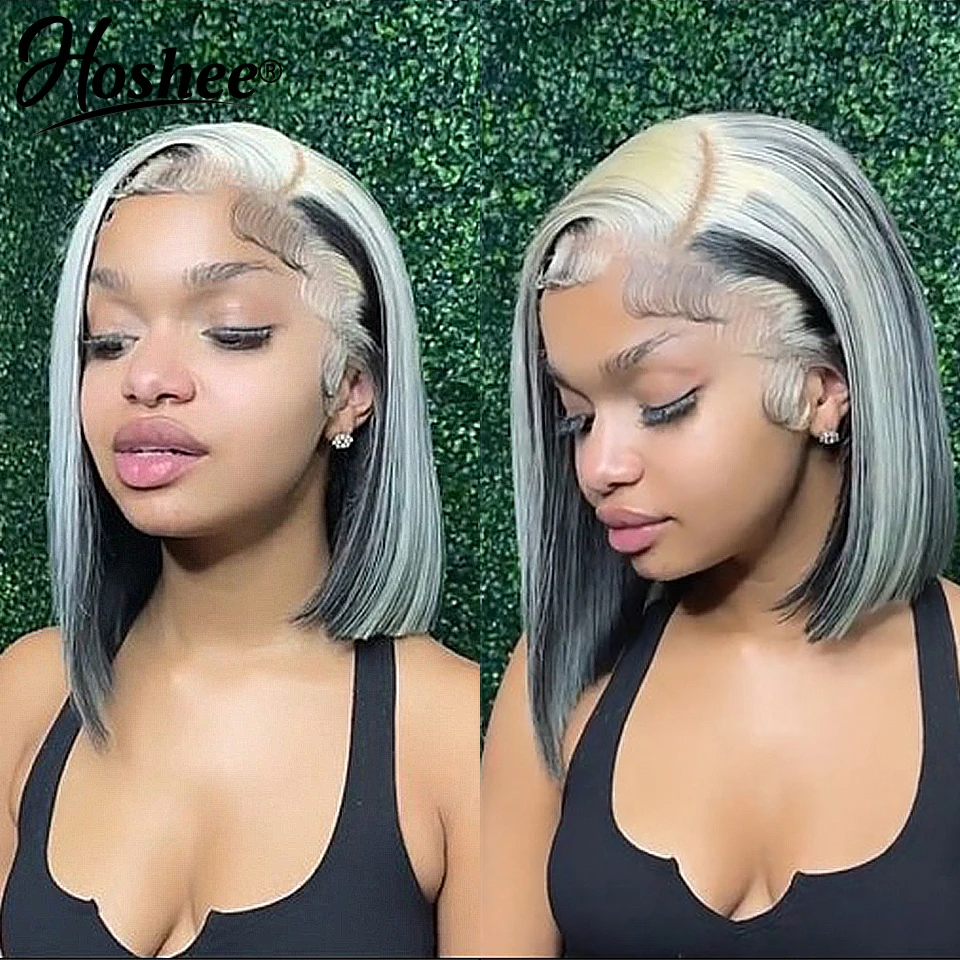 Черный, белый, Омбре, парик с кружевной передней частью, бразильский Боб, парик с кружевной передней частью, человеческие волосы, парики для женщин, HD, кружевная передняя часть, парик для косплея