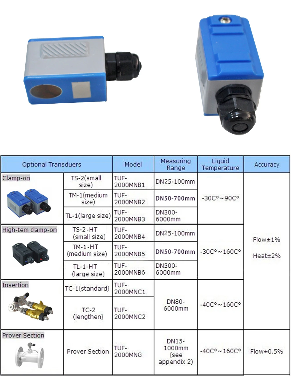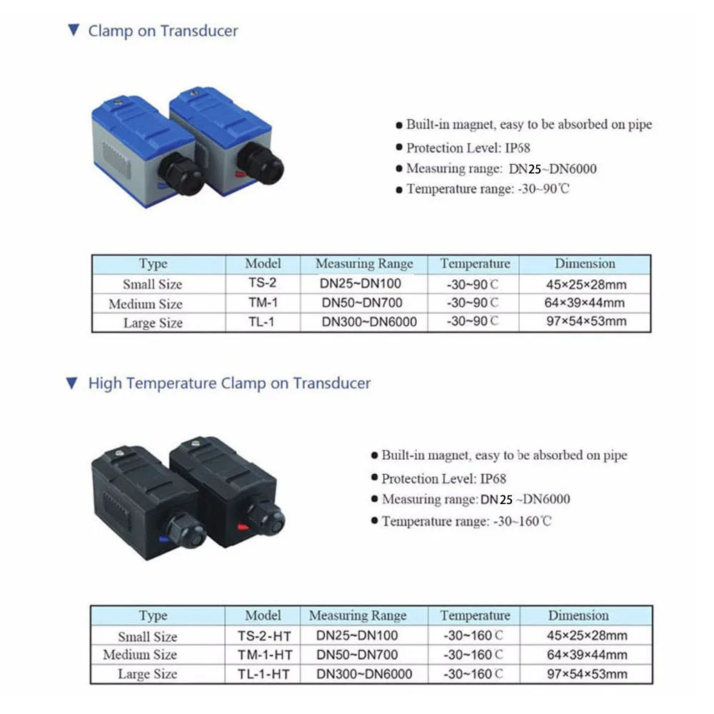 Этот тип зажимного преобразователя подходит для ультразвукового расходомера, такого как тип TDS-100F/TUF-2000B/TUF-2000M/TUF-2000F.