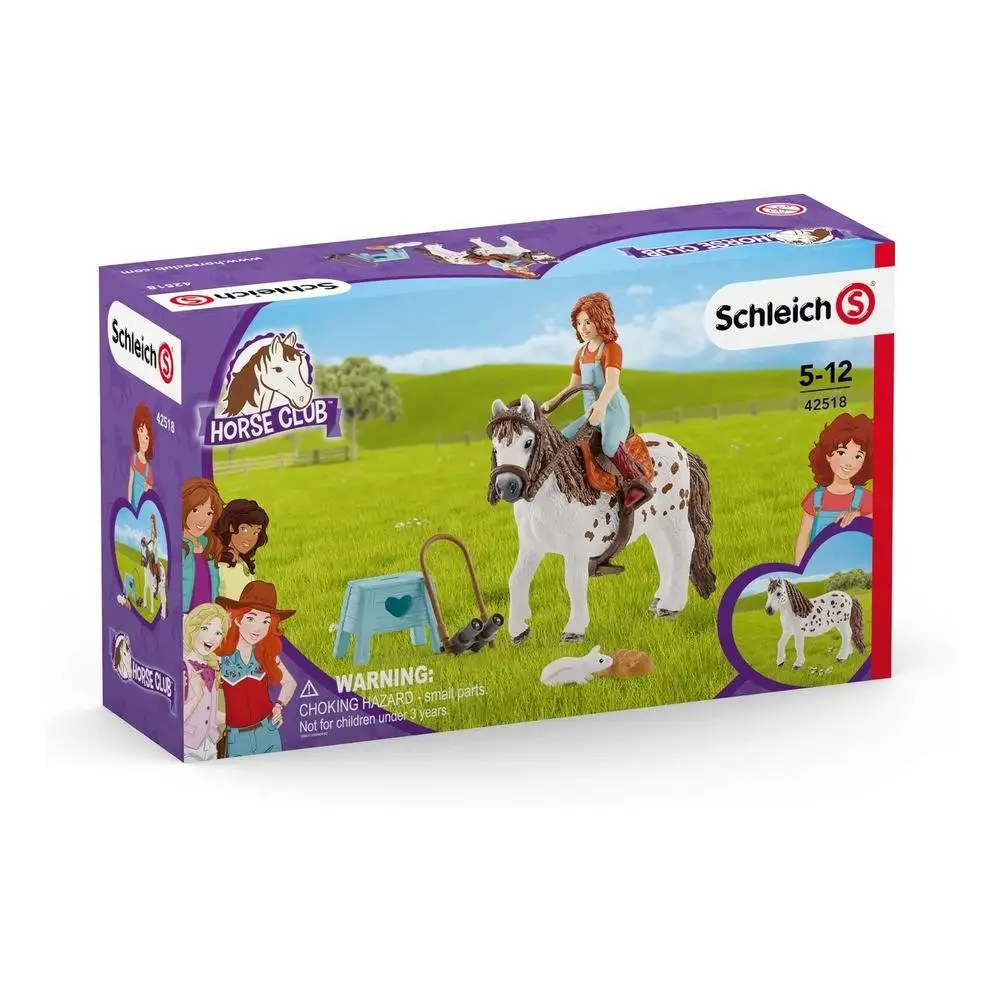 Миа, как и ее старшая сестра, посещает Конный клуб и любит лошадей. Но в то время как она все еще очень маленькая и едет на своей пони по имени споти, и сидеть в седле, ей нужно взяться за стул. В наборе от компании «Schleich» Реалистичная фигурка Белоснежки пони в яблоках и его маленького наездника, конные амуниции и другие аксессуары.