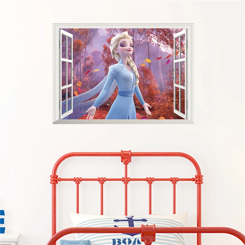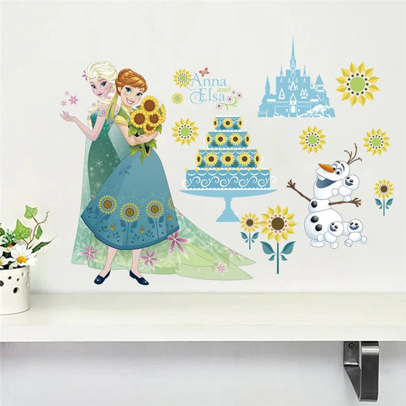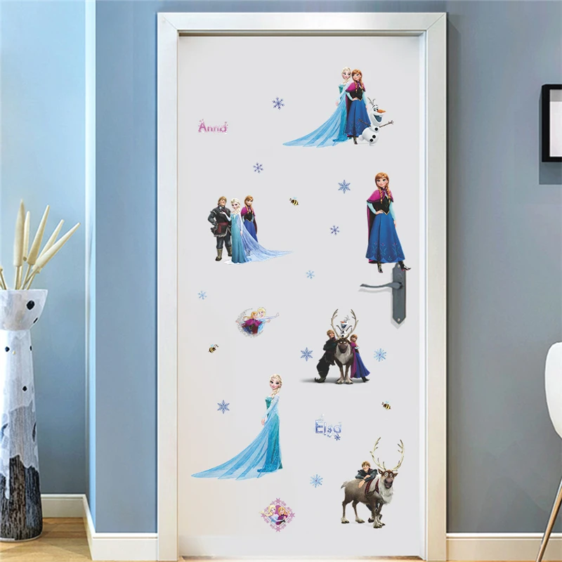 Принцесса Эльза дуб настенный Декор стикер для детской комнаты Девушка Спальня виниловая Детская высота диаграмма Наклейка самоклеющиеся обои питомник