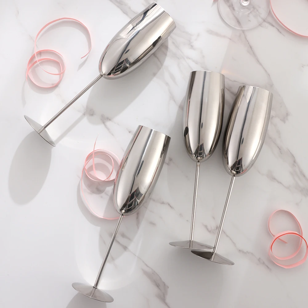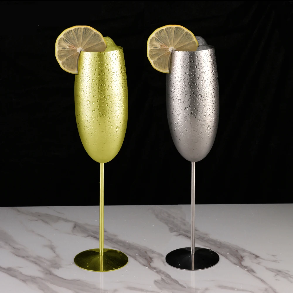 2 шт., нержавеющая сталь, шампанское, стеклянная флейта, чашка для шампанского, креативная Коктейльная чашка, 250 мл, металлические бокалы для вина, вечерние принадлежности