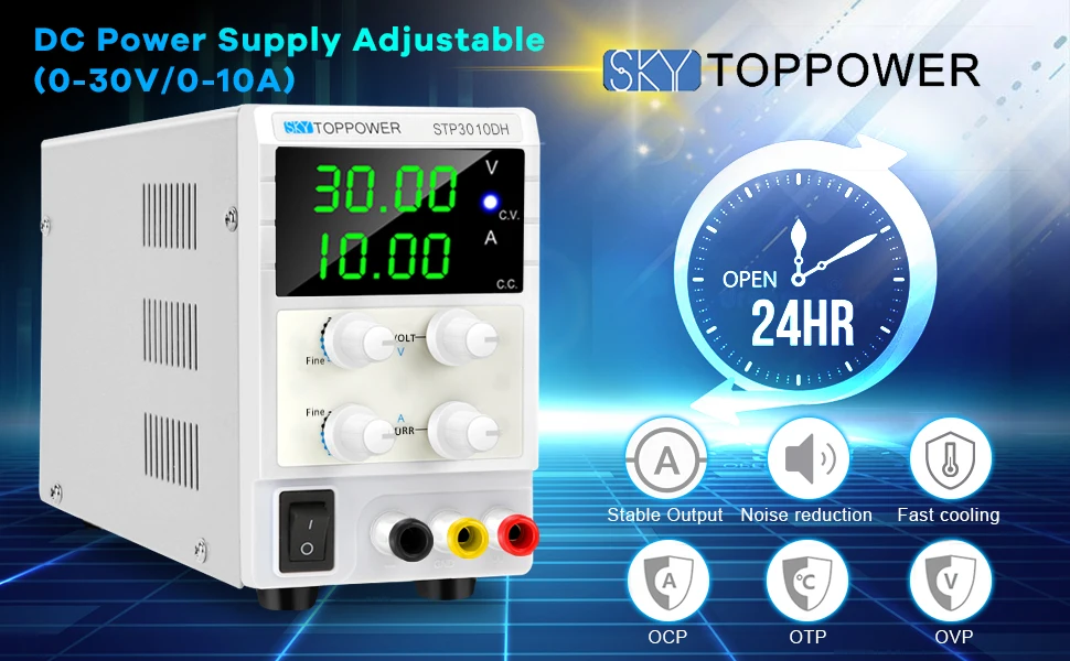 Скайтопауэр STP3010DH DC настольный источник питания предназначен для обслуживания завода и научных исследований, разработки продукта, лабораторий, школ и электронных производственных линий. Это устройство является отличным идеальным инструментом для самостоятельного ремонта автомобиля и мотоцикла или электроники. Это довольно и легко контролировать товар. Оба выходного напряжения и тока можно непрерывно регулировать по номинальной стоимости. Высокая точность, надежность, идеальная защита от перегрузки и короткого замыкания.