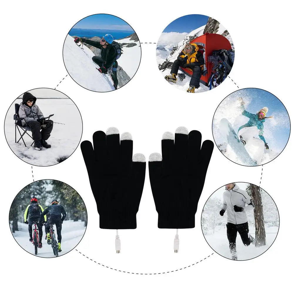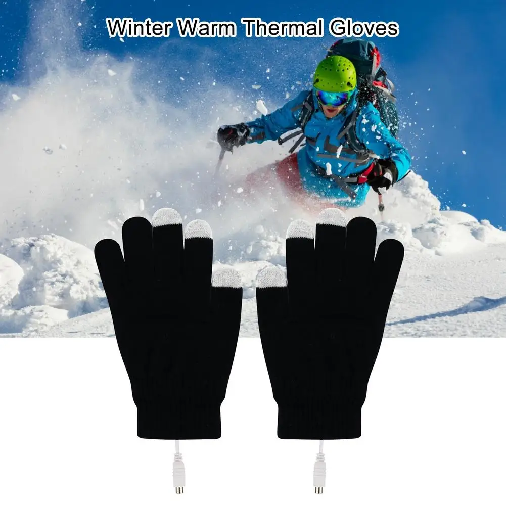 5 В USB перчатки с подогревом, зимние теплые перчатки, пять пальцев, сенсорный экран, грелки, варежки, плотные мужские и женские перчатки для катания на лыжах