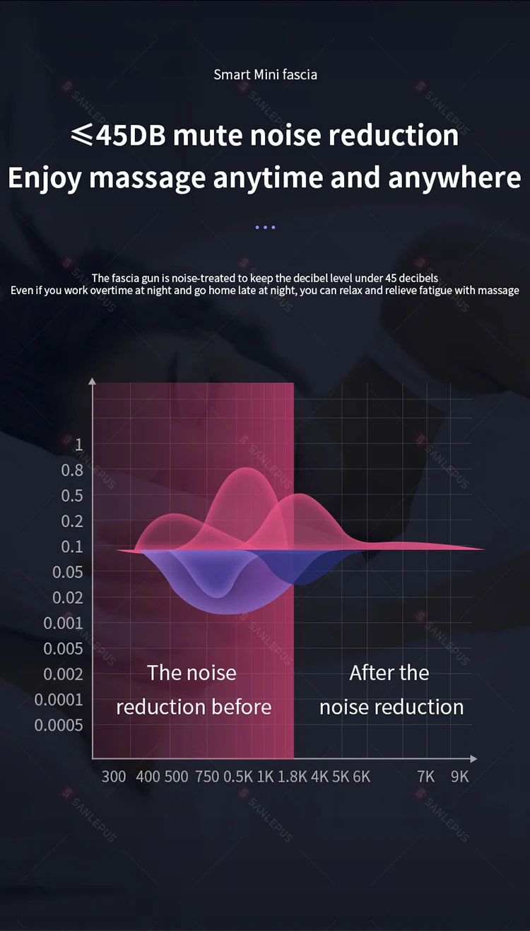 ≤ 45 дБ бесшумное шумоподавление Наслаждайтесь массажем в любое время и в любом месте