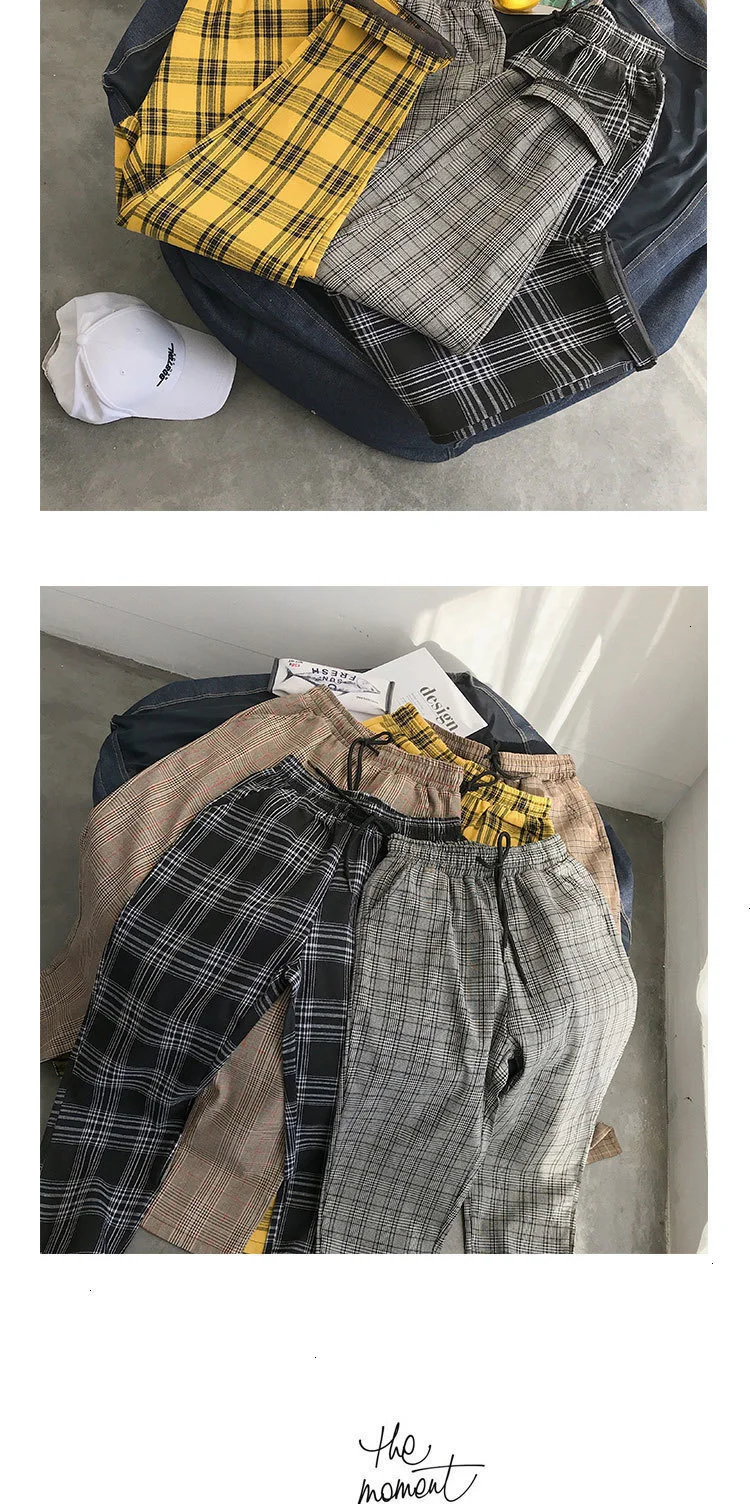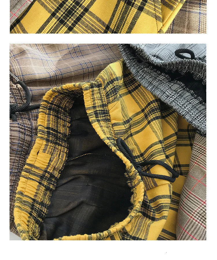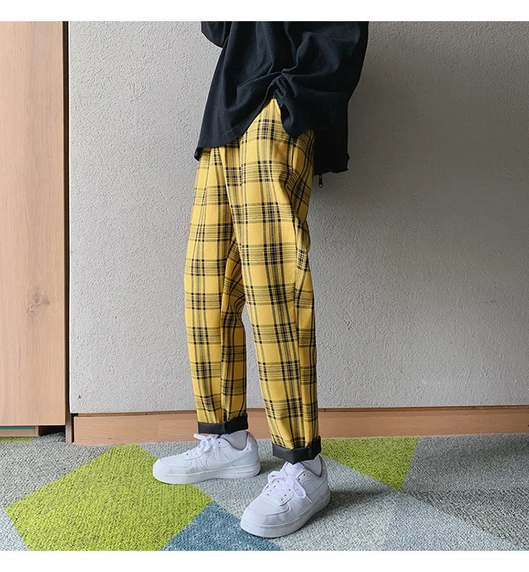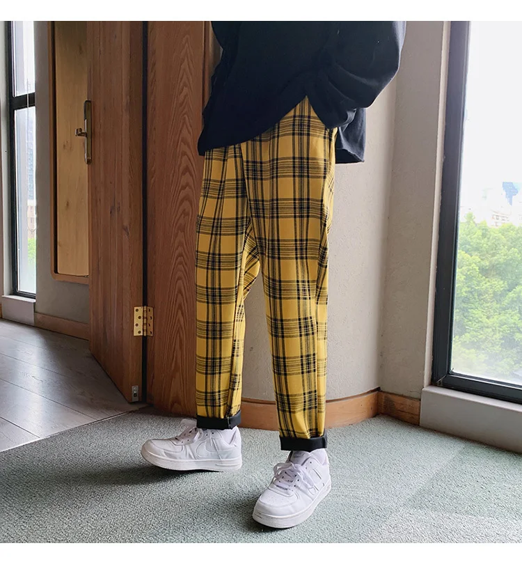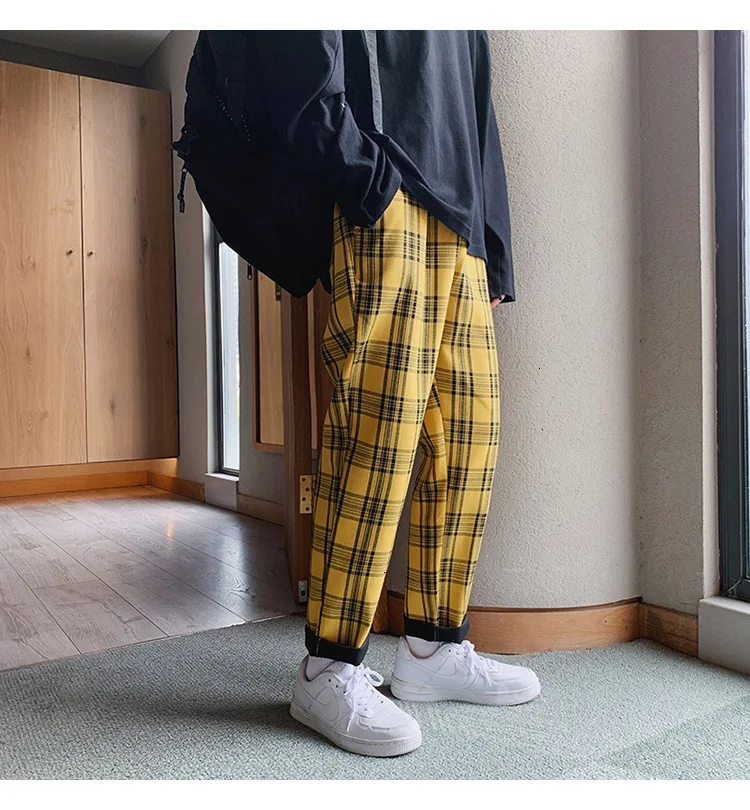 Мужские шаровары в клетку Privathinker черные и желтые клетчатые стиле Харадзюку