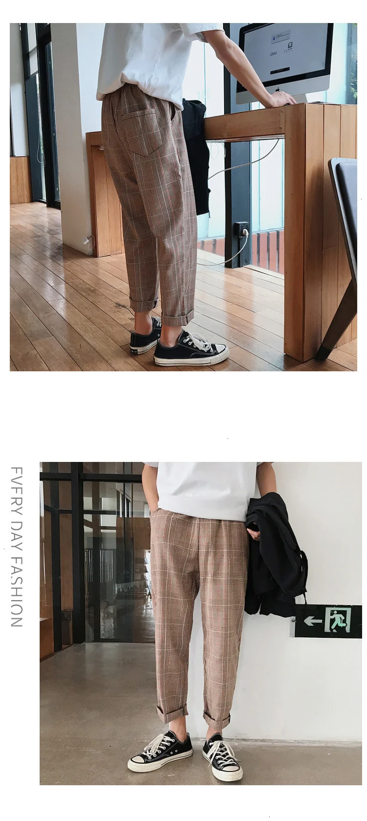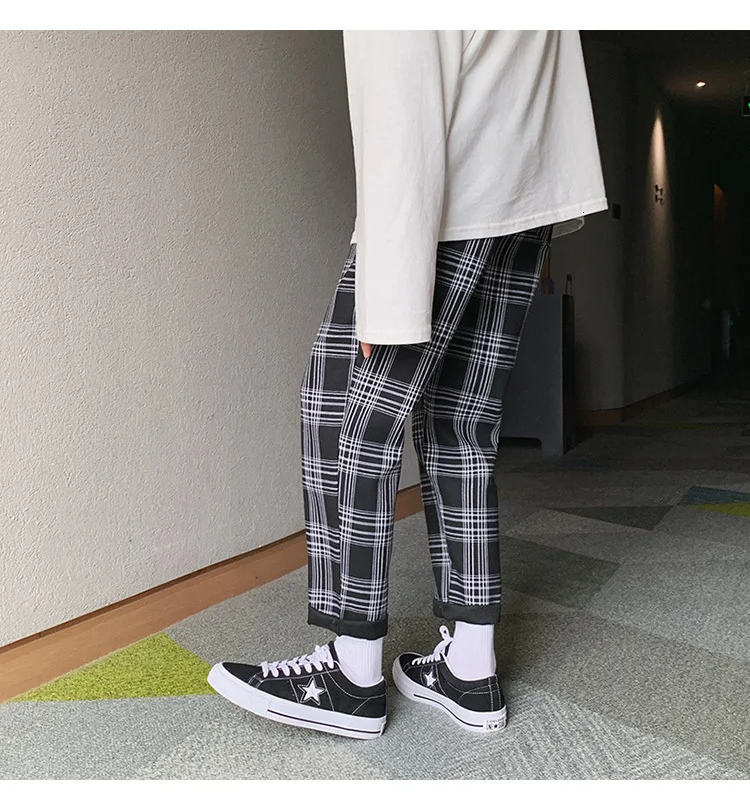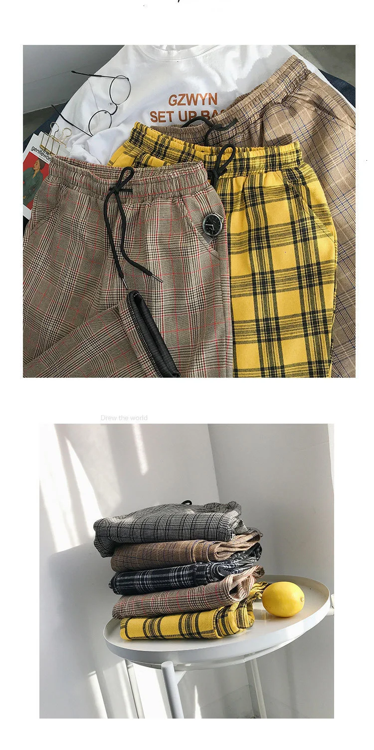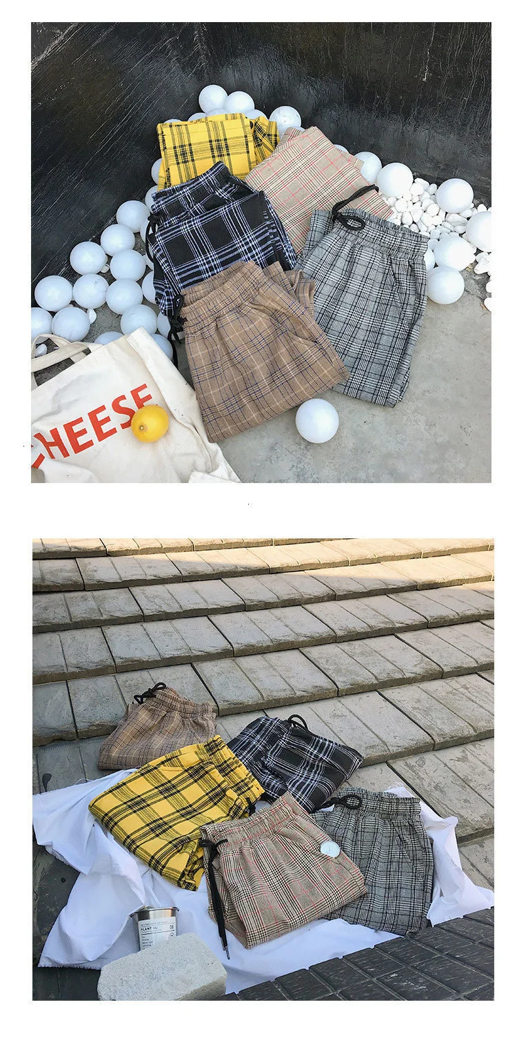 Мужские шаровары в клетку Privathinker черные и желтые клетчатые стиле Харадзюку