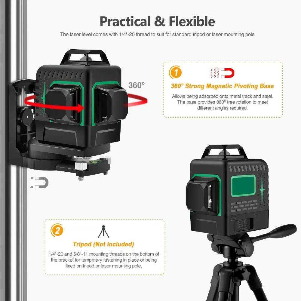 Инструмент лазерного уровня оснащен портативной веревкой для удобной переноски. Когда вы берете его на работу, вам не нужно держать его все время или искать посылка, чтобы положить его в, просто оберните веревку вокруг пальцев. Это действительно удобно носить с собой.