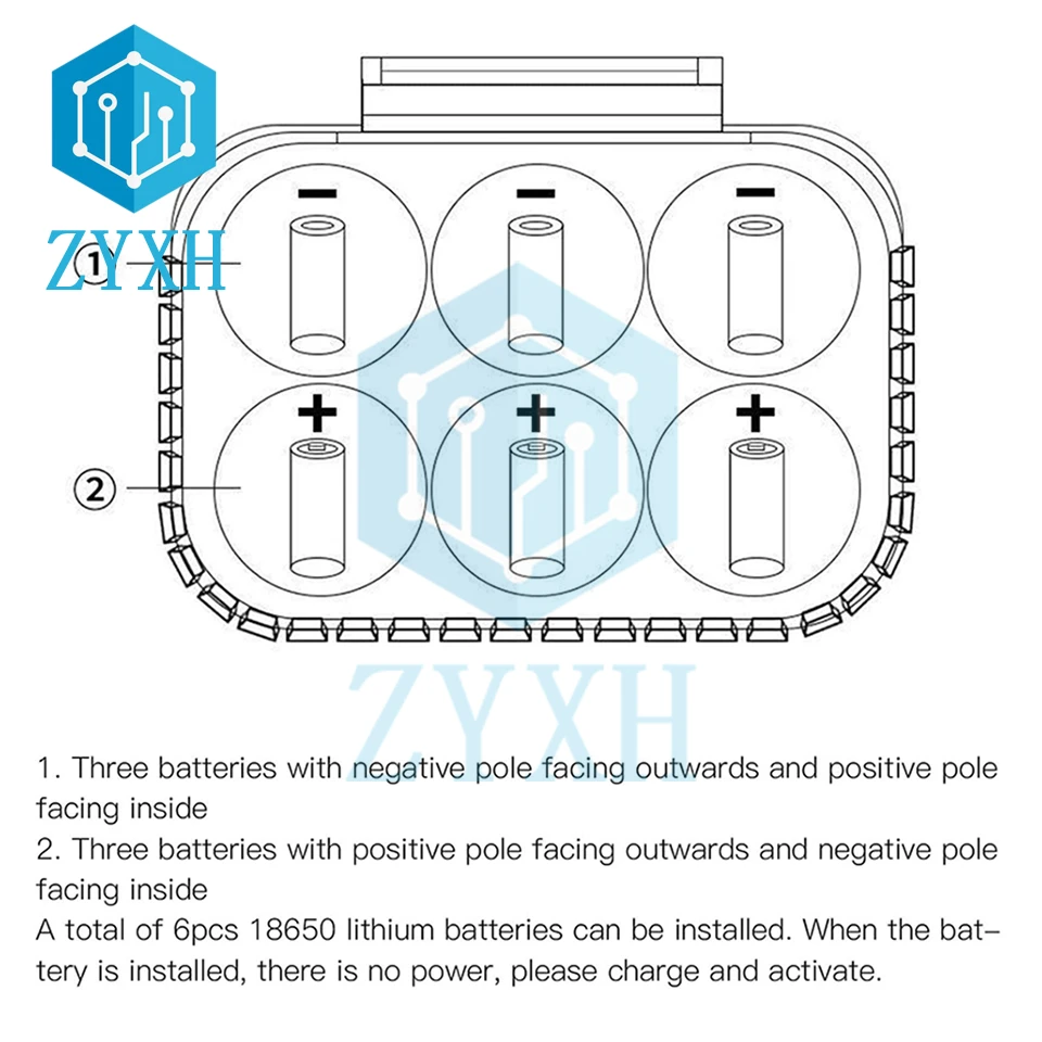 5. Когда не используется в течение длительного времени, выньте запасную батарею, которая совместима только с литиевой батареей 18650.
