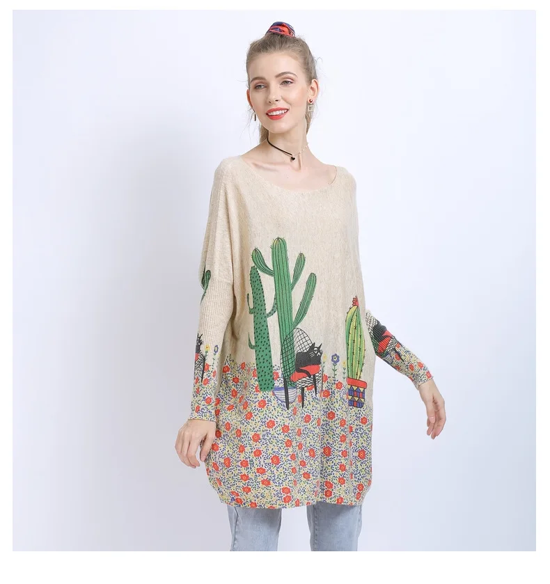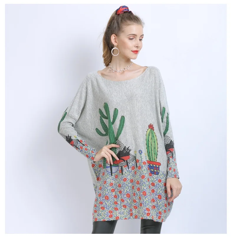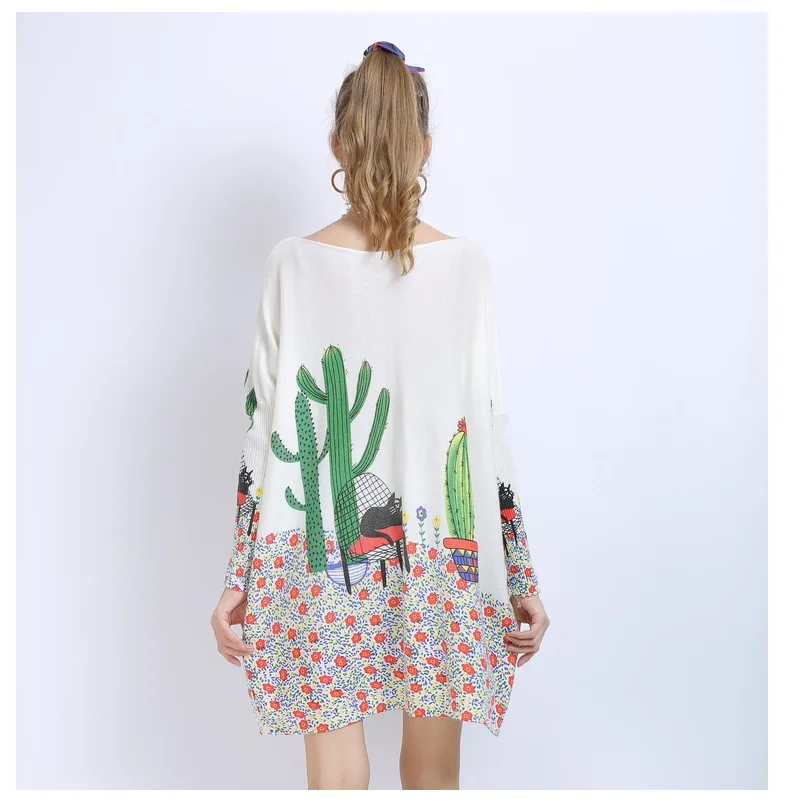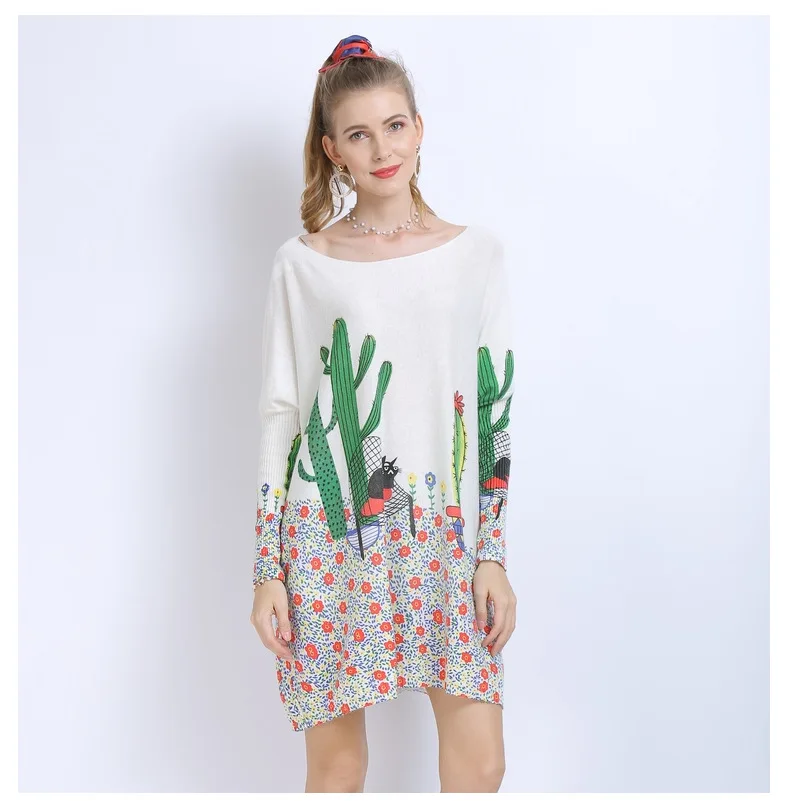 Новый осенне-зимний женский свитер с модным шерстяным принтом оверсайз с вырезом лодочкой и длинными рукавами, трикотажное платье-пуловер
