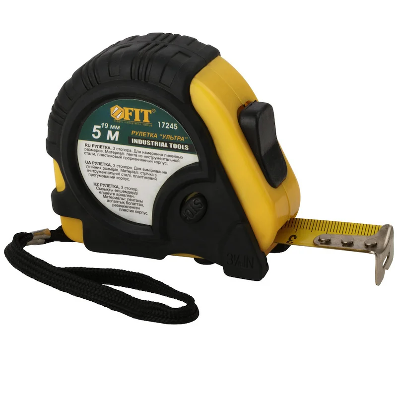 Рулетка FIT с тройным стопором 5 м х 19 мм 17245 - приспособление с калиброванной лентой длиной 5 метров, которое применяется для линейного измерения различных поверхностей. Прорезиненный корпус защитит от повреждений в случае падения и обеспечивает надежный хват. Тройной стопор значительно облегчает работу с инструментом.