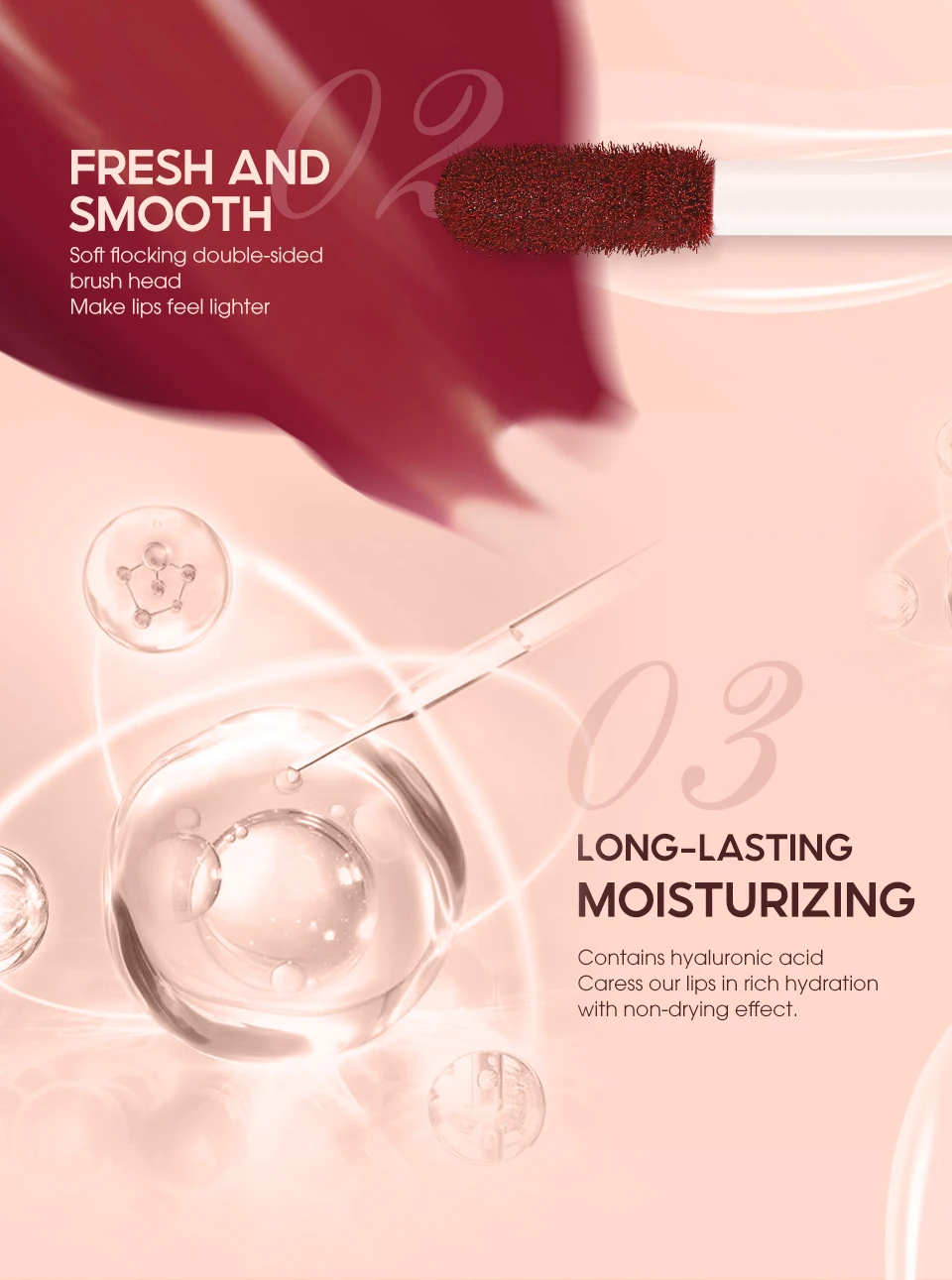 Увлажняющая формула: Эта увлажняющая формула придает великолепный блеск без жирности и липкости. Носите отдельно или Приобретайте свой любимый цвет губ для создания яркого образа.