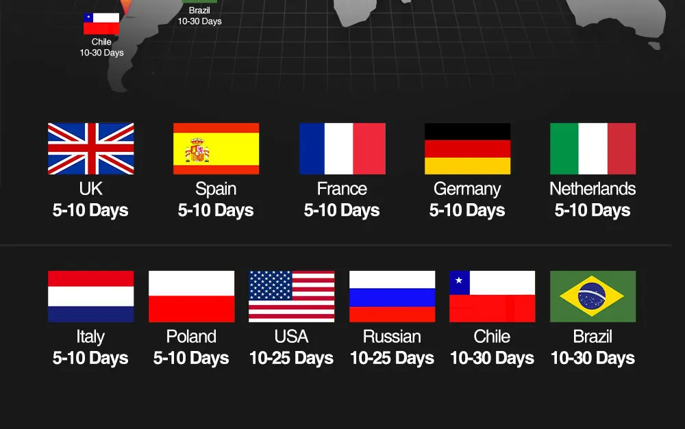 Другие страны или регионы: 15-50 дней