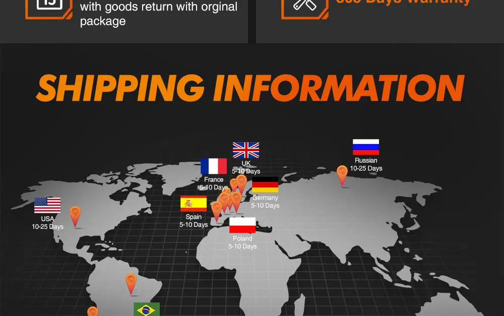 О: мы создали транспортные склады в Китае и США, обычно доставляем в течение 1-3 рабочих дней.