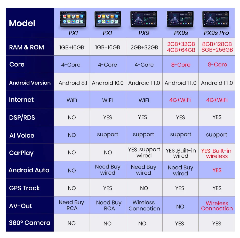 > Поддержка Android 11,0 + QLED + CarPlay/Android AutoS / PX9(PX9S / PX9Spro поддержка s wireless carplay)+ Встроенный 4G интернет (опции) + gps-навигация (бесплатное обновление карты) + Управление рулевым колесом + зеркальная ссылка + DSP 48EQ + сплит-экран + Bluetooth 5,0 Совместимость + Встроенный микрофон + FM / AM + RDS + USB DVR ADAS Поддержка + Поддержка европейских DAB + воспроизведение видео 1080P + HD 1024*600 + Система контроля давления в шинах + Поддержка голосового управления (нужно купить) + Функция GPS отслеживания (нужно купить).