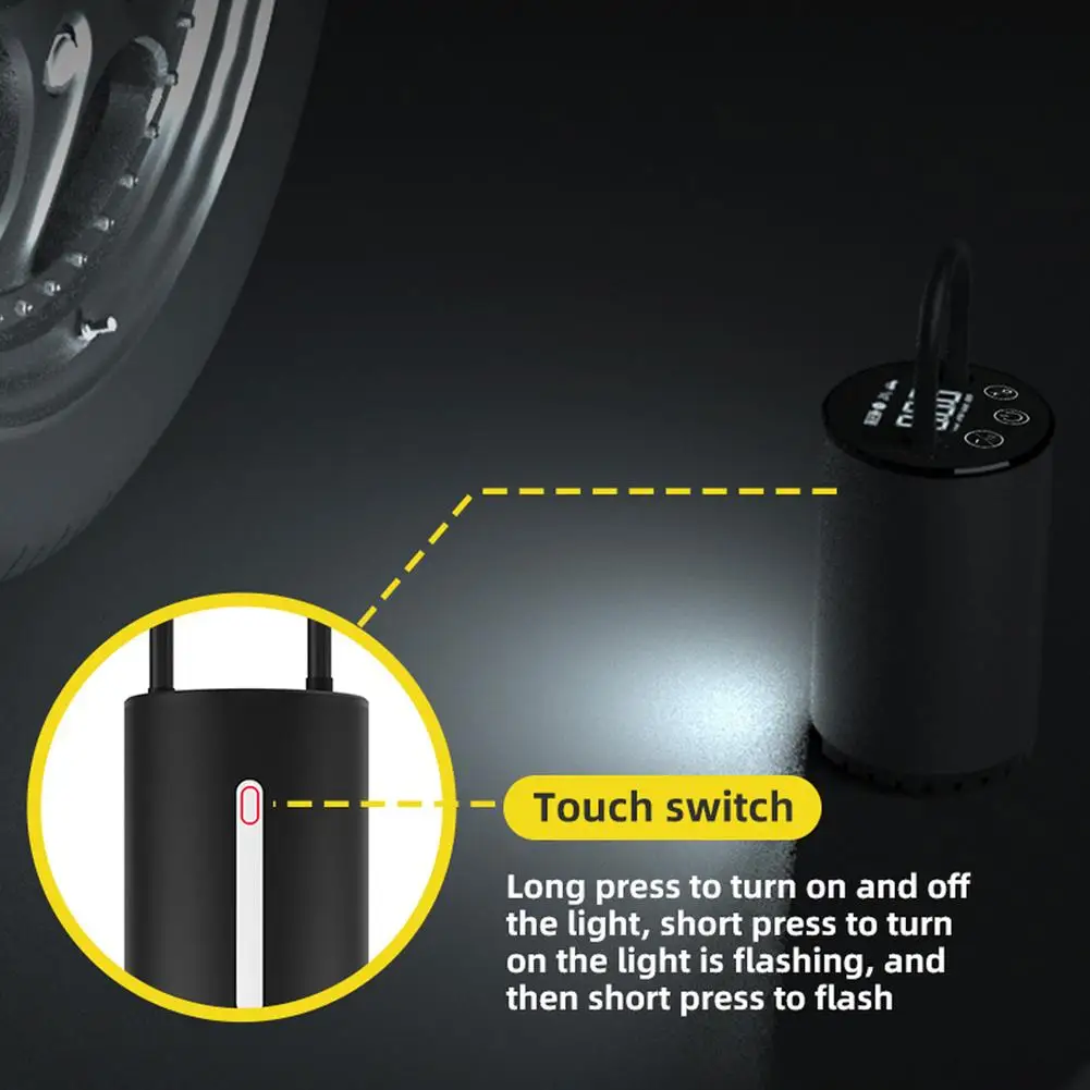 5. Быстрая автоматическая инфляция: Накачка шин может задать давление в шинах по мере необходимости. Когда установленное давление в шинах достигнет, насос для шин автоматически отключится. Максимальное давление накачки составляет 150 фунтов на квадратный дюйм.