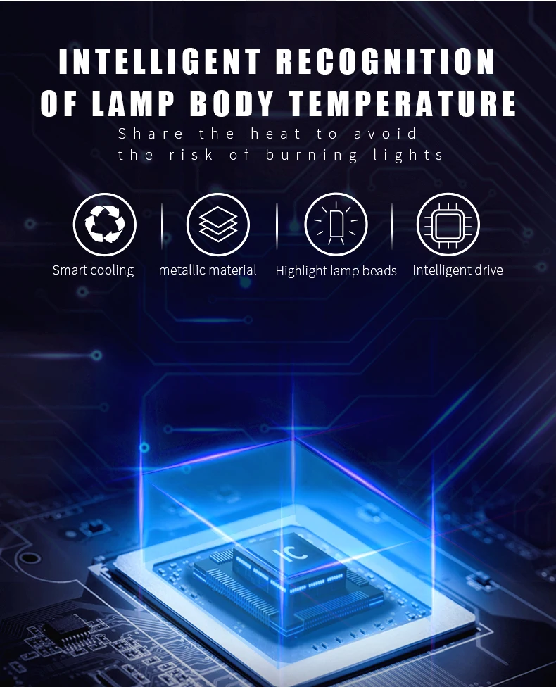 Высокое качество: весь корпус лампы использует материал из авиационного алюминиевого сплава, встроенный вентилятор сверху, обеспечивая отличную теплоотдачу, обеспечивая Безопасный и долговечный срок службы лампы.