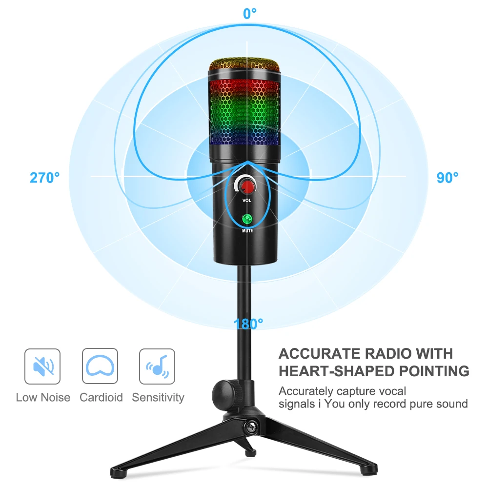 Конденсаторный USB-микрофон разработан с профессиональным набором звуковых микросхем, высокой частотой дискретизации 192 кГц/24 бит, а Модернизированный кардиоидный Полярный узор уменьшит фоновый шум сбоку и сзади, только фокусирует источники звука непосредственно перед микрофоном, он обеспечивает кристально чистый и реальный звук.