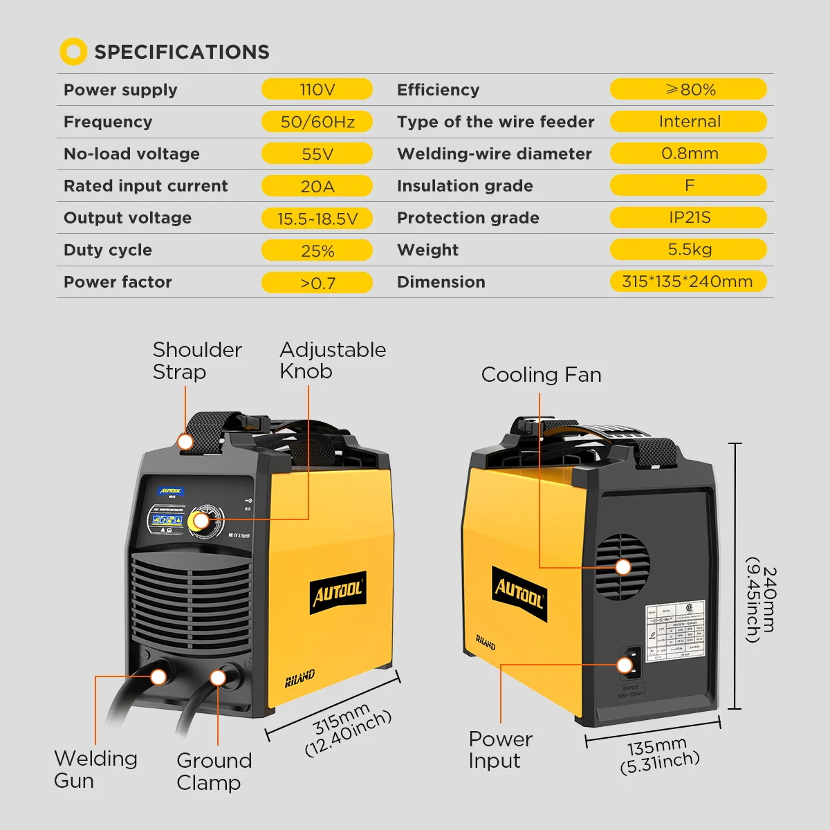 4. [легкий и портативный]: сварочный аппарат AUTOOL M518 ARC MIG весит менее 5 кг и имеет дизайн плечевого ремня, поэтому его можно легко переносить для сварки.