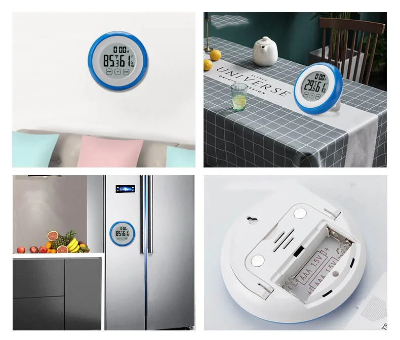 Сенсорный экран Измеритель температуры и влажности круглый бытовой цифровой дисплей комнатный термометр гигрометр студенческий Рабочий стол бесшумные часы