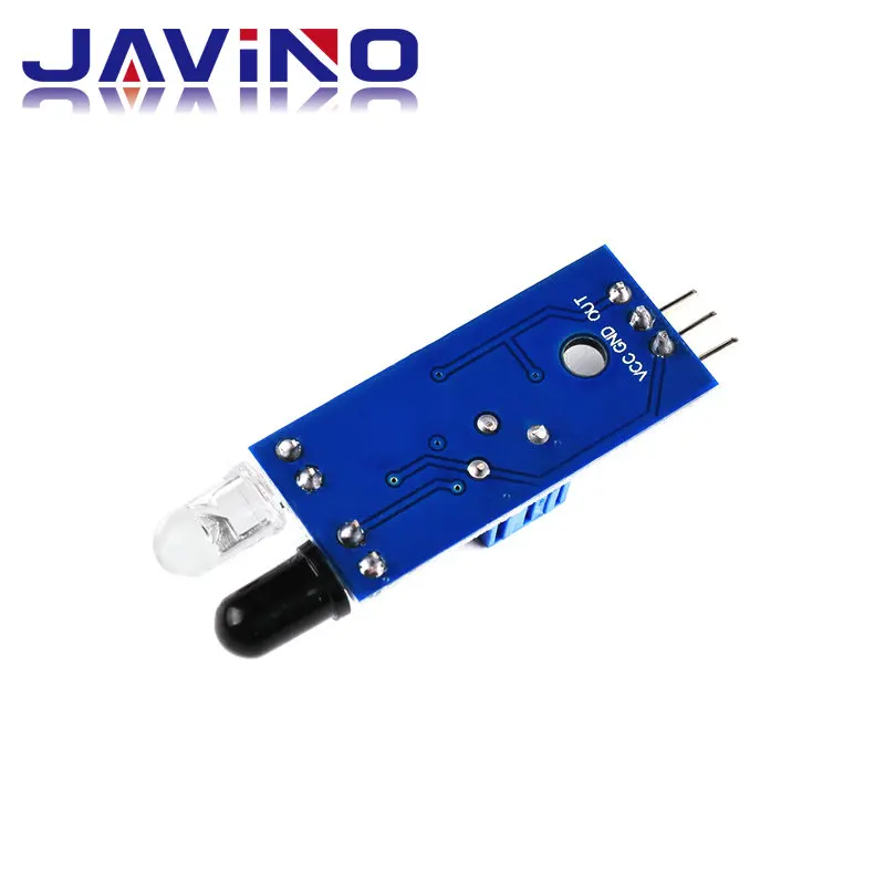 Описание модуляМодуль датчика адаптируется к окружающему светильник, имеющий пару инфракрасных излучателей и приемных трубок, передающих трубок излучают инфракрасную определенную частоту, при обнаружении направления препятствия (отражающая поверхность), инфракрасное отражение получено приемной трубкой, после обработки схемы компаратора зеленый светильник включен, Но выходной интерфейс сигнала выводит цифровой сигнал (низкоуровневый сигнал), вы можете отрегулировать регулятор расстояния обнаружения потенциометра, эффективный диапазон расстояния 2 ~ 30 см, рабочее напряжение 3,3 V- 5V. Диапазон обнаружения датчика может быть получен через регулировочный потенциометр, с небольшими помехами, легко собирается, прост в использовании, может быть широко использован в избегании препятствий робота, избегании автомобиля, подсчет линии, И черно-белая линия отслеживания и много других случаев.Параметры модуляКогда модуль обнаруживает препятствие перед сигналом, зеленый индикатор горит на уровне платы, в то время как выходной порт выдерживает Низкий сигнал, модуль определяет расстояние 2 ~ 30 см, угол обнаружения 35 °, расстояние может обнаруживать потенциал регулируется по часовой стрелке потенциометра регулировки, определяет расстояние увеличивается; Потенциометр регулировки против часовой стрелки, уменьшение расстояния обнаружения.2, датчик активного инфракрасного отражения обнаружения, целевой отражательной способности и, следовательно, форма является критическим расстоянием обнаружения. Где Минимальное расстояние обнаружения черный, белый, максимум; Маленькие предметы вдали от небольшой площади, большой площади от Grand.3, выходной порт модуля датчика может быть непосредственно подключен к микроконтроллеру IO также может быть непосредственно управляется реле 5 В; Подключение: VCC-VCC; GND-GND; OUT-IO4, компараторы LM393, стабильные;5. Модуль может быть 3-5 в постоянного тока. Когда питание включено, красный индикатор питания загорается;6, с винтовыми отверстиями 3 мм, простая установка;7, Размер доски: 3,2 см * 1,4 см8, каждый модуль был отправлен пороговое напряжение компаратора регулируется потенциометром хорошо, неспециальный чехол, не регулируемый потенциометр.Описание интерфейса модуля1 VCC 3,3 V-5V внешний напряжение (может быть напрямую соединен с 5v и 3,3 v микроконтроллер)2 GND внешний3 выхода небольшой платы цифровой выходной интерфейс (0 и 1)