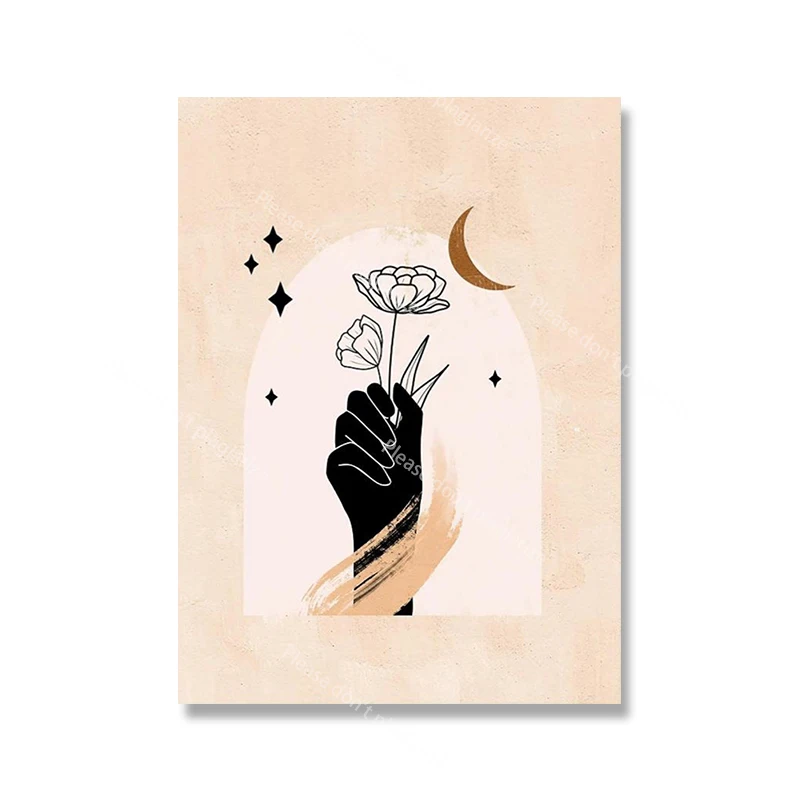 Абстрактная пустыня кактус холст живопись геометрический пейзаж плакаты