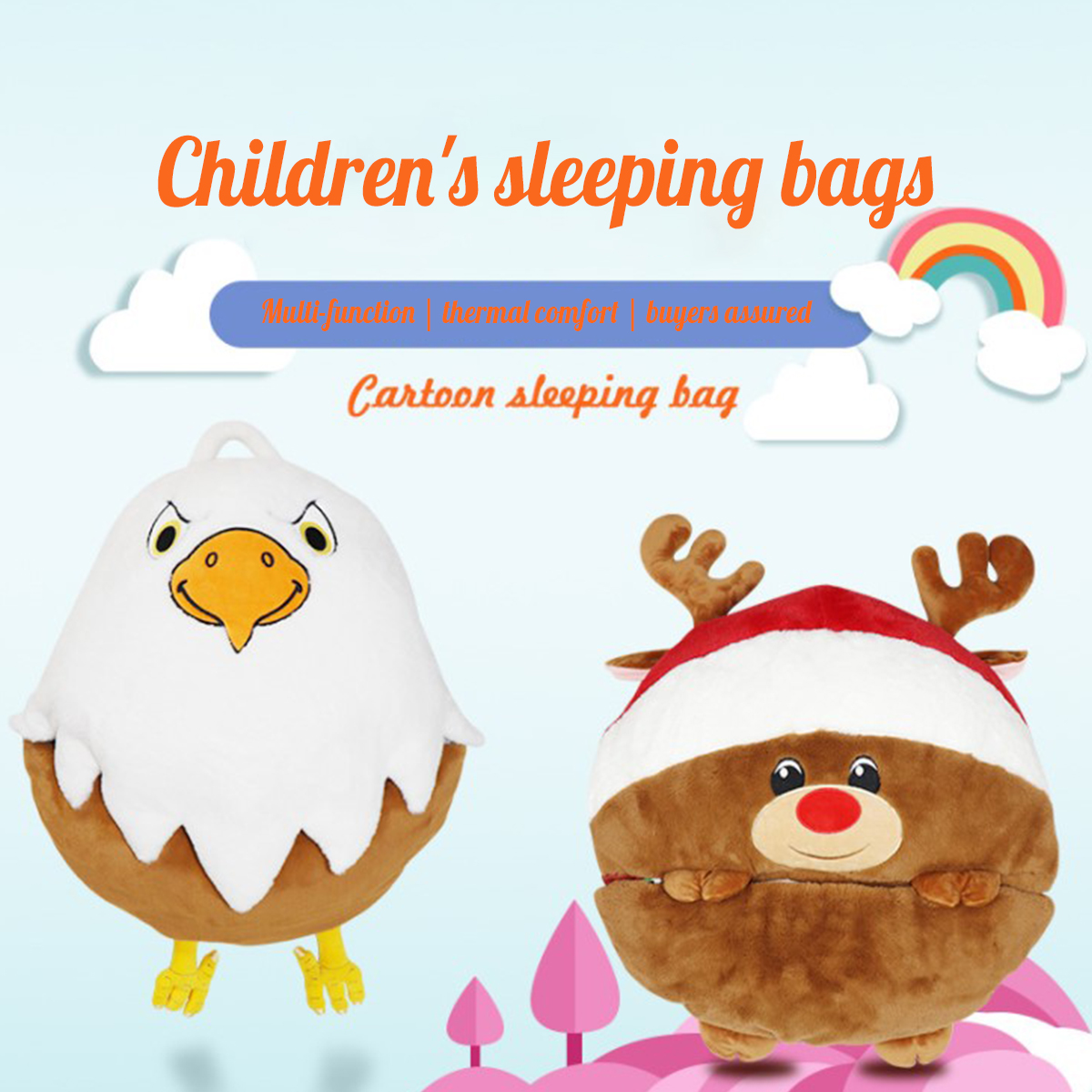 【Высокое Качество 】 мультяшный спальный мешок изготовлен из кроличьего пуха, наполнен PP хлопком, очень теплый, мягкий и удобный, отличный на ощупь. Можно стирать в стиральной машине без повреждений.