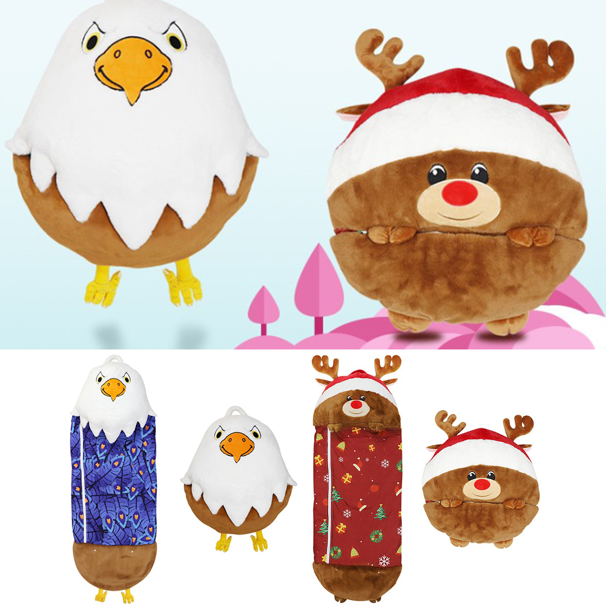 【 2 в 1 Подушка для сна удобная детская подушка для сна имеет два вида использования. В сложенном виде они могут стать куклами, и когда они разворачиваются, они могут стать мешочками для сна со встроенными подушками.