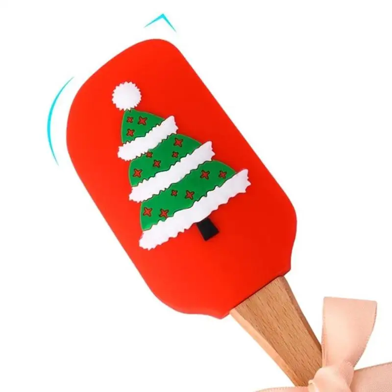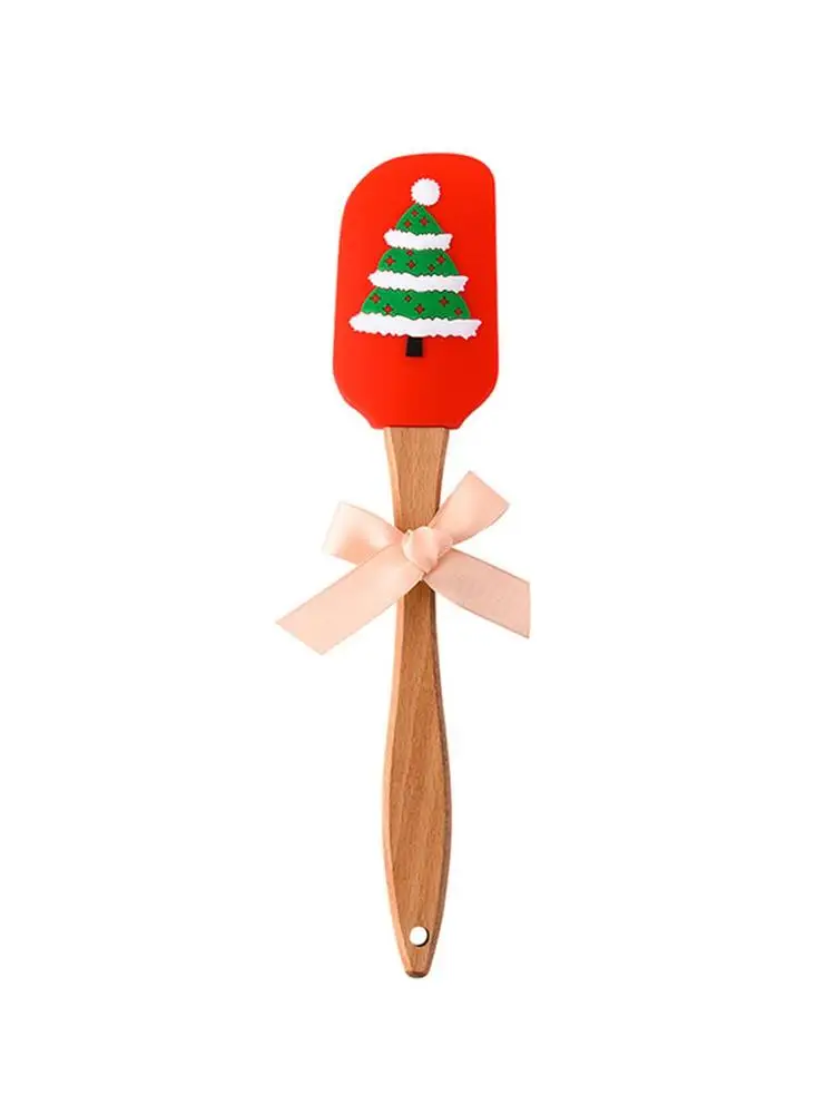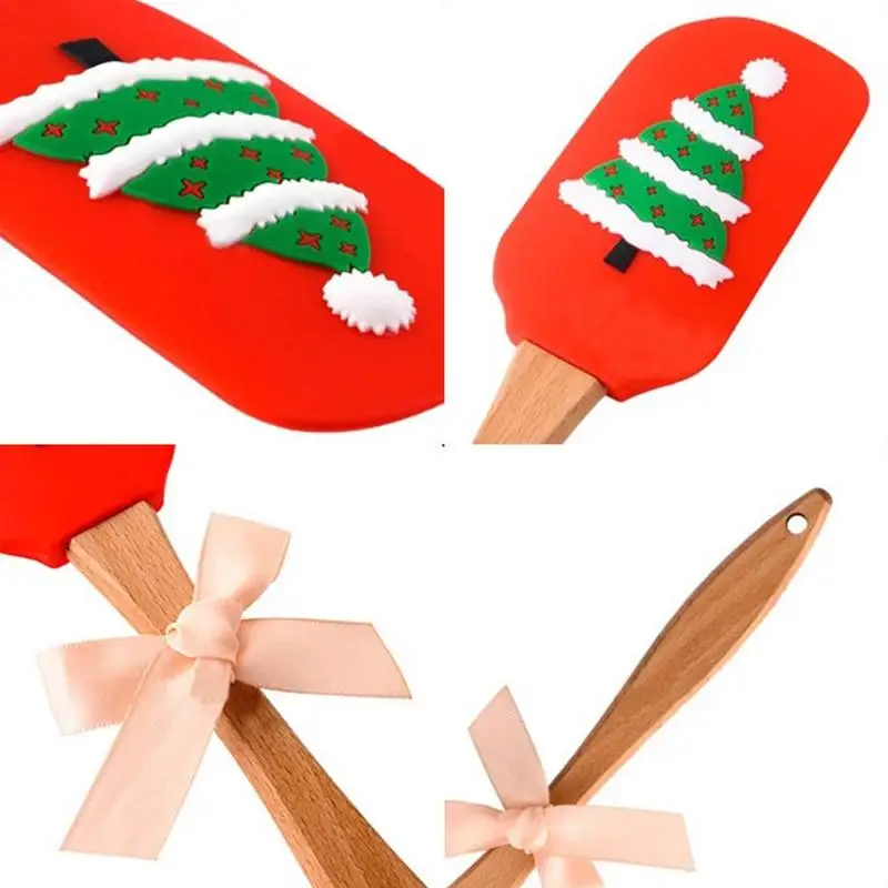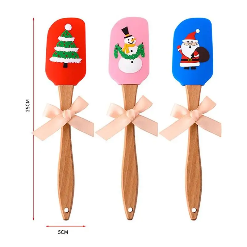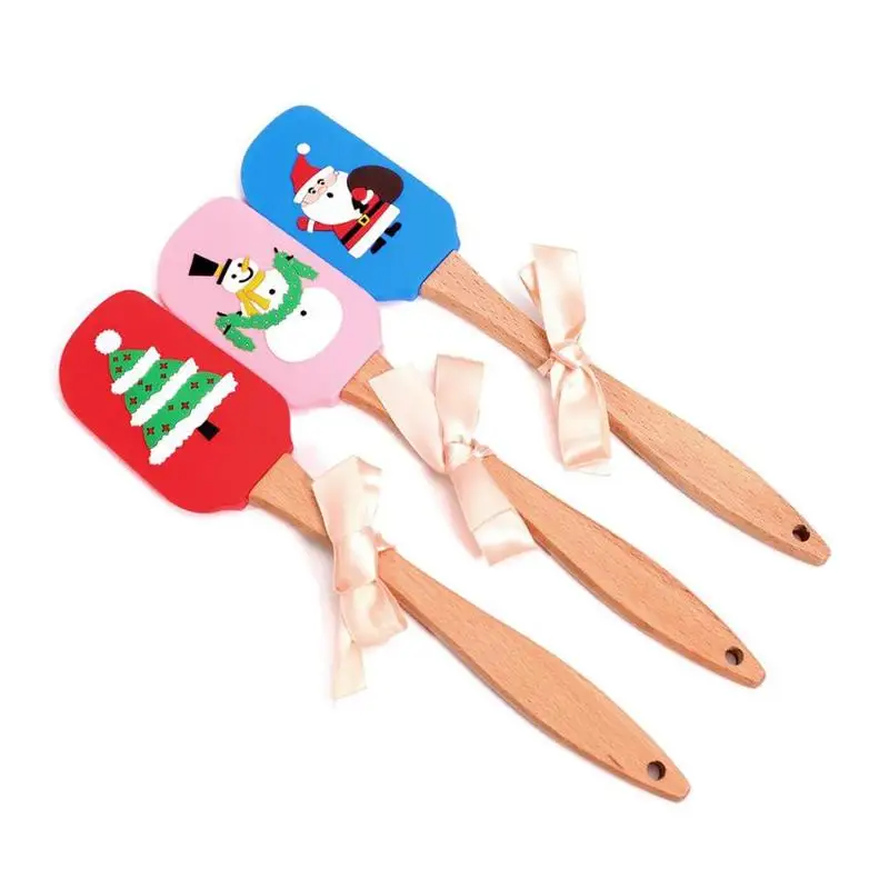 Название продукта: Рождественский узор пищевой силиконовый шпатель для масла маленькая шпатель с деревянная ручка, силикон шпатель