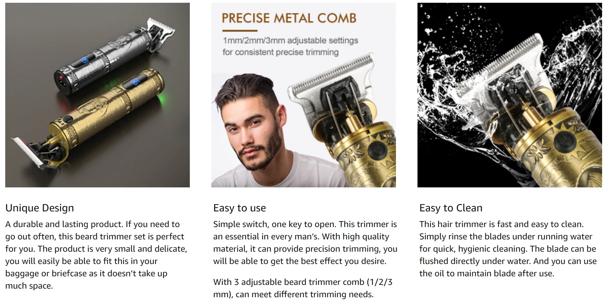 【Superior performance】-мощным мотором и sharp лезвия позволяют легко и быстро кроя без Застревание в волосах; Различные типы направляющий гребень позволяют обрезать волосы точно в трех вариантах длины (1,5 мм, 2 мм, 3 мм, 4 мм). Для безопасности транспортировки, наши продукты не содержат масла!
