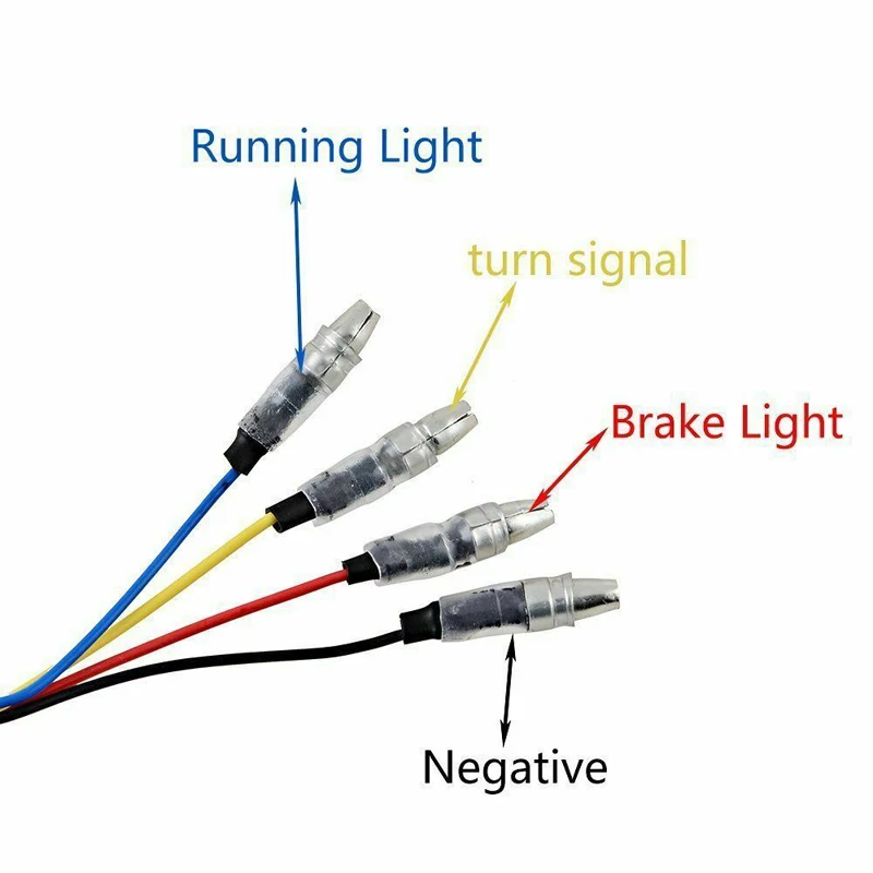 Черный для отрицательных, красный для тормозной светильник, синий для ходовой светильник и желтый для сигнала поворота