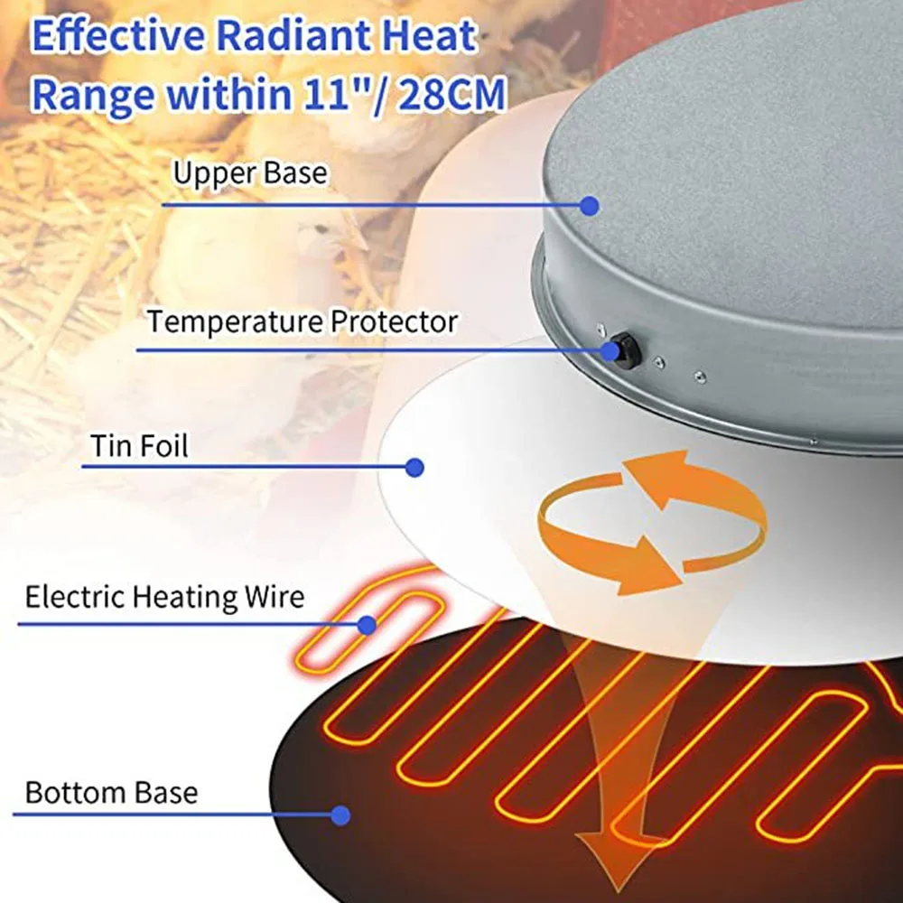 Водонагреватель птицы база с подогревом зимняя овощерезка база с подогревом фермы база широко используется подходит для небольших животных Plug And Play Характеристика: Автоматический водонагреватель для курицы: 120 В переменного тока 60 Гц 125 Вт, подогреваемый питатель для куриной воды может быть Термостатически контролирован, чтобы работать только при необходимости, избегайте замерзания воды из-за 0 градусов по Фаренгейту или холодной погоды, предлагаем вашей милой птице больше заботы Сверхмощный и термостатический: оцинкованная стальная базовая поверхность и алюминиевые вкладыши высокой плотности, с хорошей теплопроводностью и хорошей для максимального использования и обеспечения безопасности, Подключи и работай: подогреваемый животноводческий водонагреватель не имеет запасных частей для замены, просто подключите к источнику питания, и ваши цыплята или фермерские животные будут наслаждаться мягкой теплой водой в течение нескольких минут Широкое применение; Отлично подходит для маленьких животных, низкая мощность нагревательной базы хорошо подходит для уличных копов и замораживания зимних температур, и обеспечивает стабильную нежную тепловую воду, не обжигая вашу собаку, кошку или рот животных Спецификация: Напряжение: 120 вольт Максимальная мощность: 125 Вт Частота: 60 Гц Размер: 37*37*4 см Посылка включает в себя: 1 x нагревательное основание для поилка для птиц Примечание: Чтобы защитить от электрических опасностей, не помещайте продукт рядом с водой или Не погружайте его. Всегда отключайте основание нагревателя, когда он не используется. Не используйте основание нагревателя при заметном повреждении шнура питания или вилки. Проверьте шнур и вилку перед использованием.