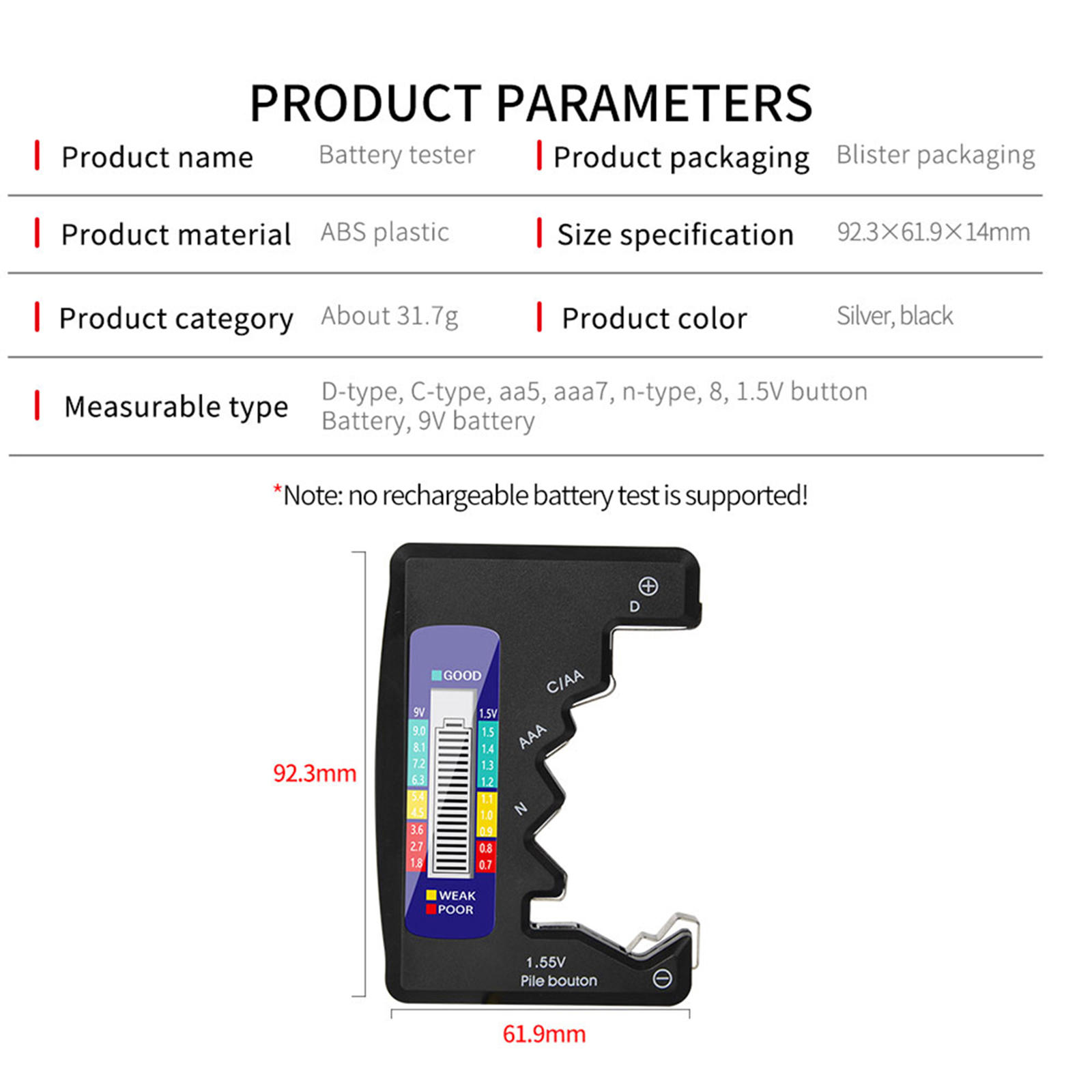 Тестер батареи checker, измеряемый Тип: D Тип, C Тип, AA5, AAA7, N Тип 8, 1,5 V кнопочный аккумулятор, батарея 9V.