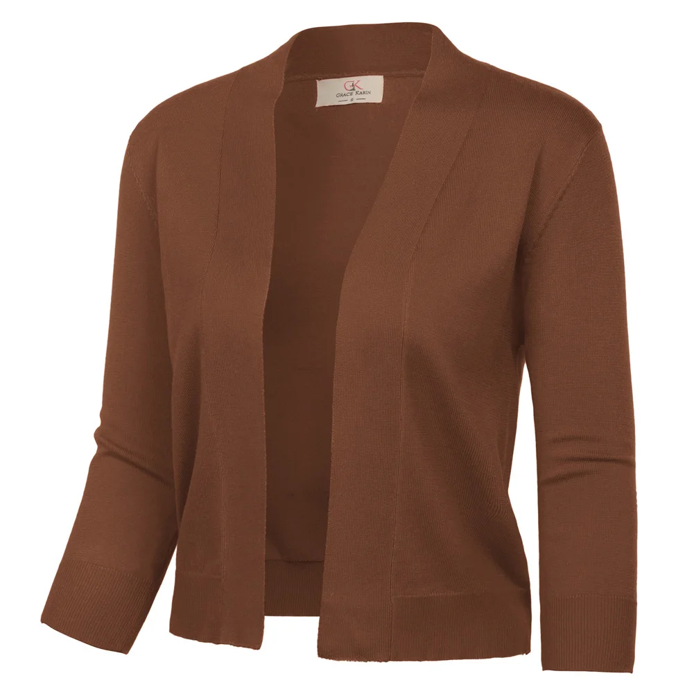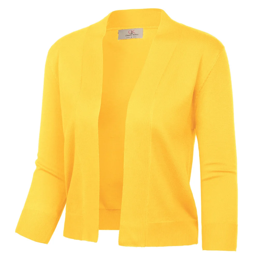 Женский короткий кардиган GK трикотажный с рукавом 3/4 и болеро деловые топы
