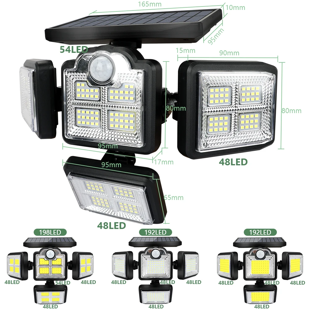 Solar PIR Motion Sensor Light 198LED Outdoor Garden Wall Lamp 192COB with Remote Waterproof Security Lights 3 Modes Lighting