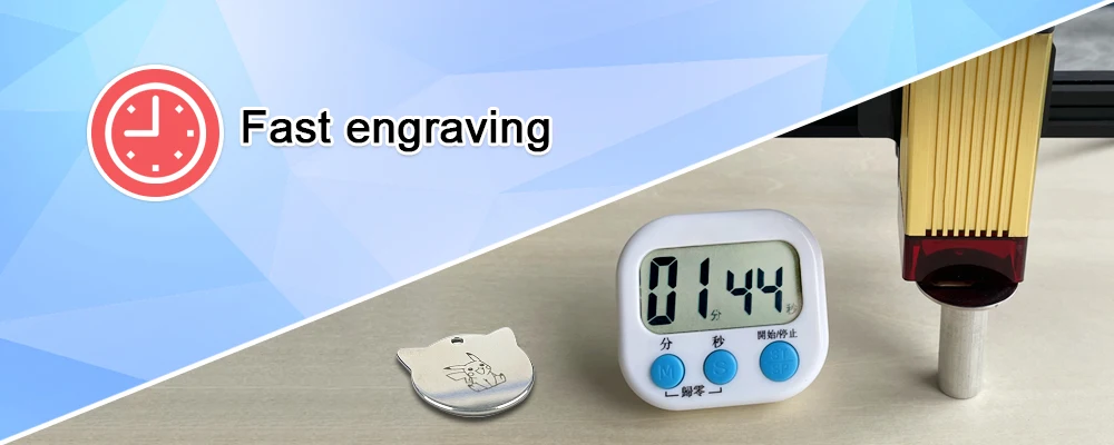 4. Супер быстрая скорость гравировки: нержавеющая сталь 304, до 30 мм/сек. с фокусным расстоянием 20 мм;