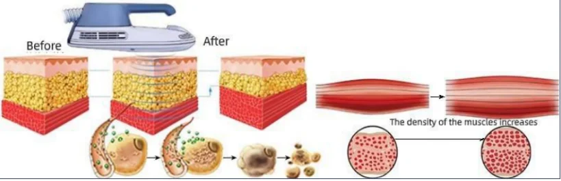 100% экстремальное сокращение мышц технологии может вызвать большое количество разложения жира, жирные кислоты сломаются от триглицеридов и накапливаются в жировых клетках. Концентрации жирных кислот слишком высоки, что приводит к аоптозу жировых клеток, который выводится из-за нормального метаболизма организма в течение нескольких недель. Поэтому тонкая косметическая машина может усиливать и увеличивать мышцы и одновременно уменьшать жир