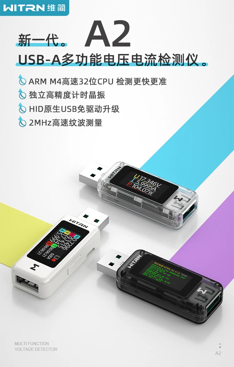 Weijian A2 WITRN USB-A измеритель напряжения и тока (A2 новая версия, новая форма, частная форма, двусторонняя Кнопка тока)