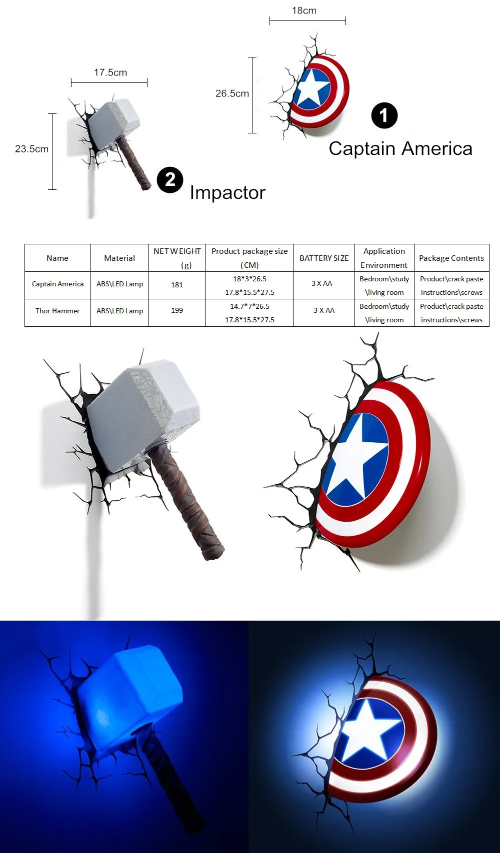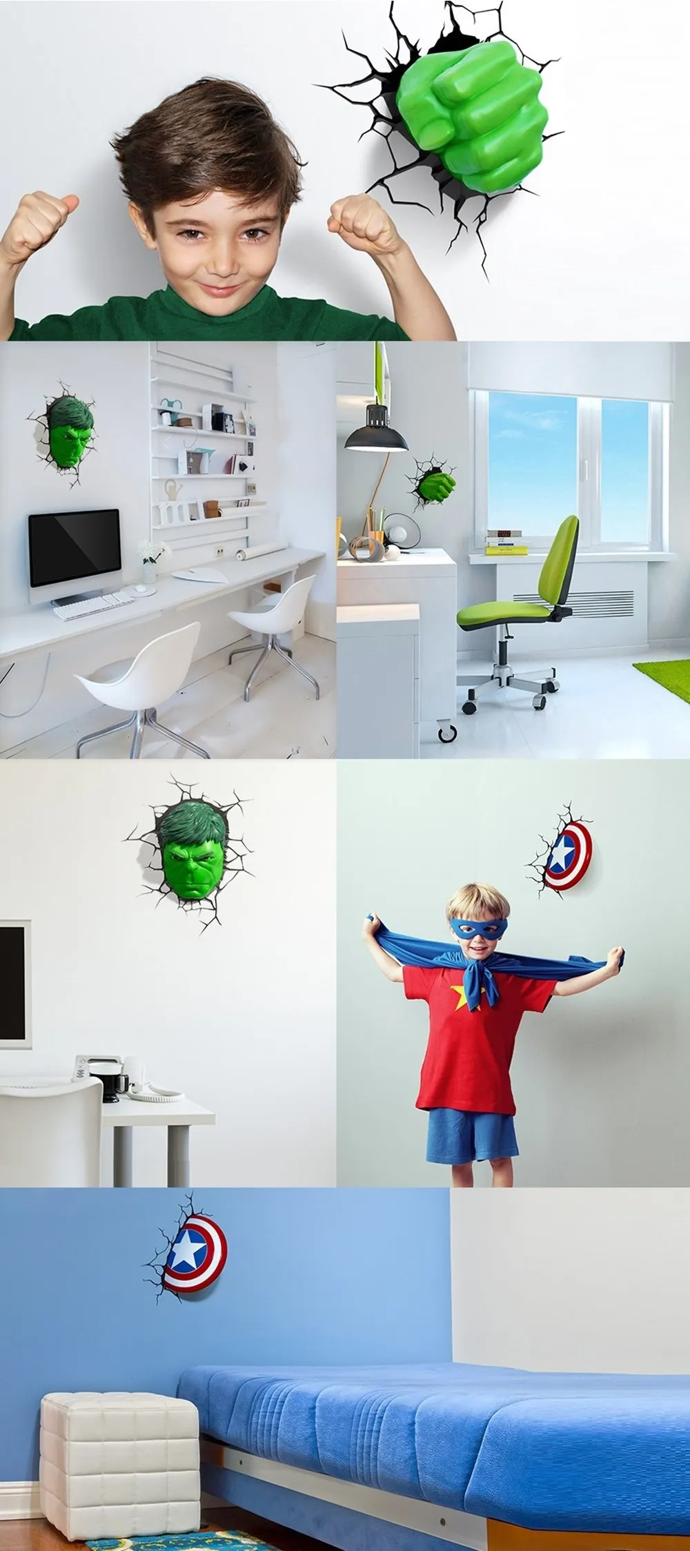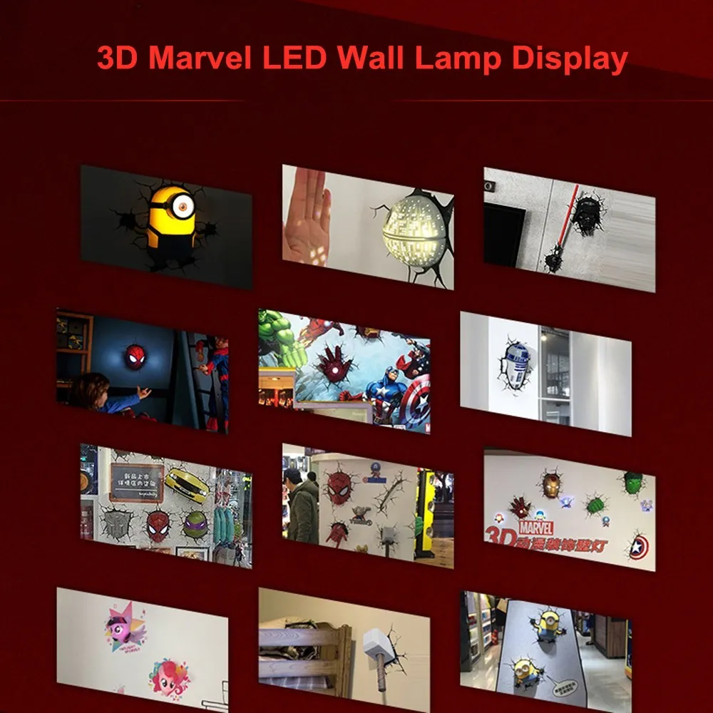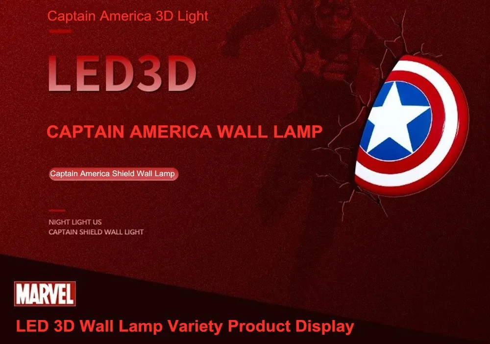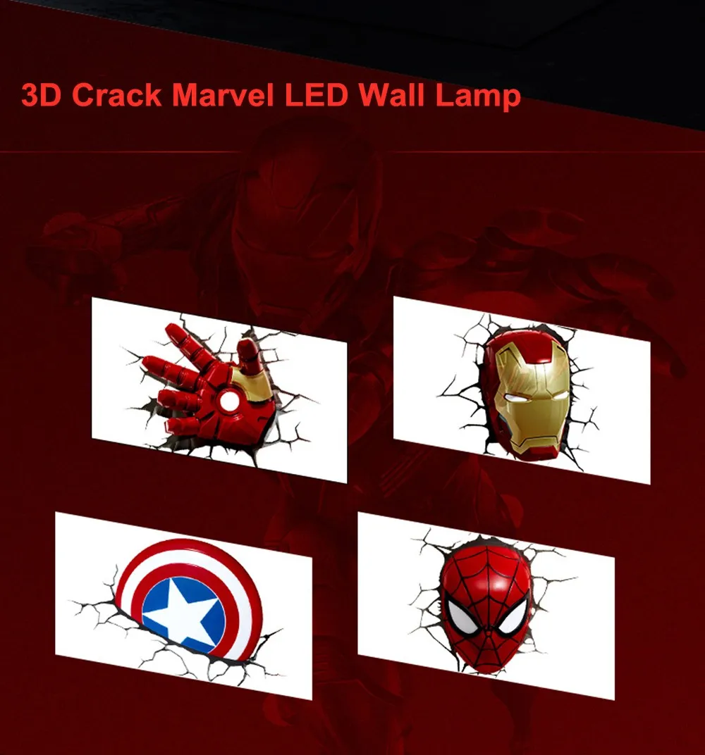 Креативный Ночной светильник серии Мстители Капитан Америка Железный человек Халк 3D Marvel светодиодный настенный светильник Декор для спальни Рождественский подарок для детей