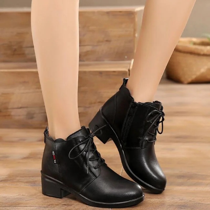 Женские нескользящие ботинки на квадратном каблуке из натуральной кожи | Обувь