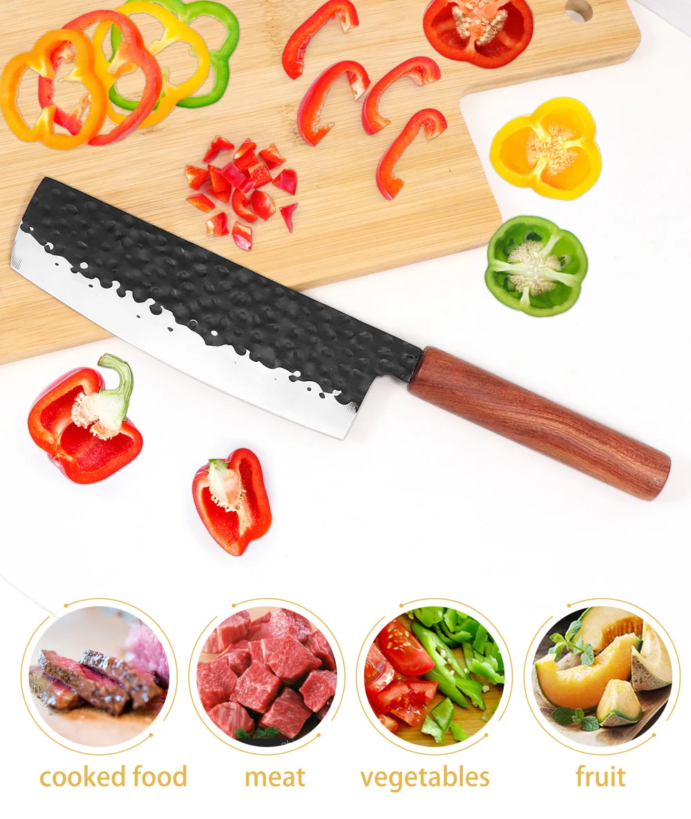 4. Ручной Кованый Нож для мяса: этот нож шеф-повара ручной ковки, что делает лезвие острым и прочным.