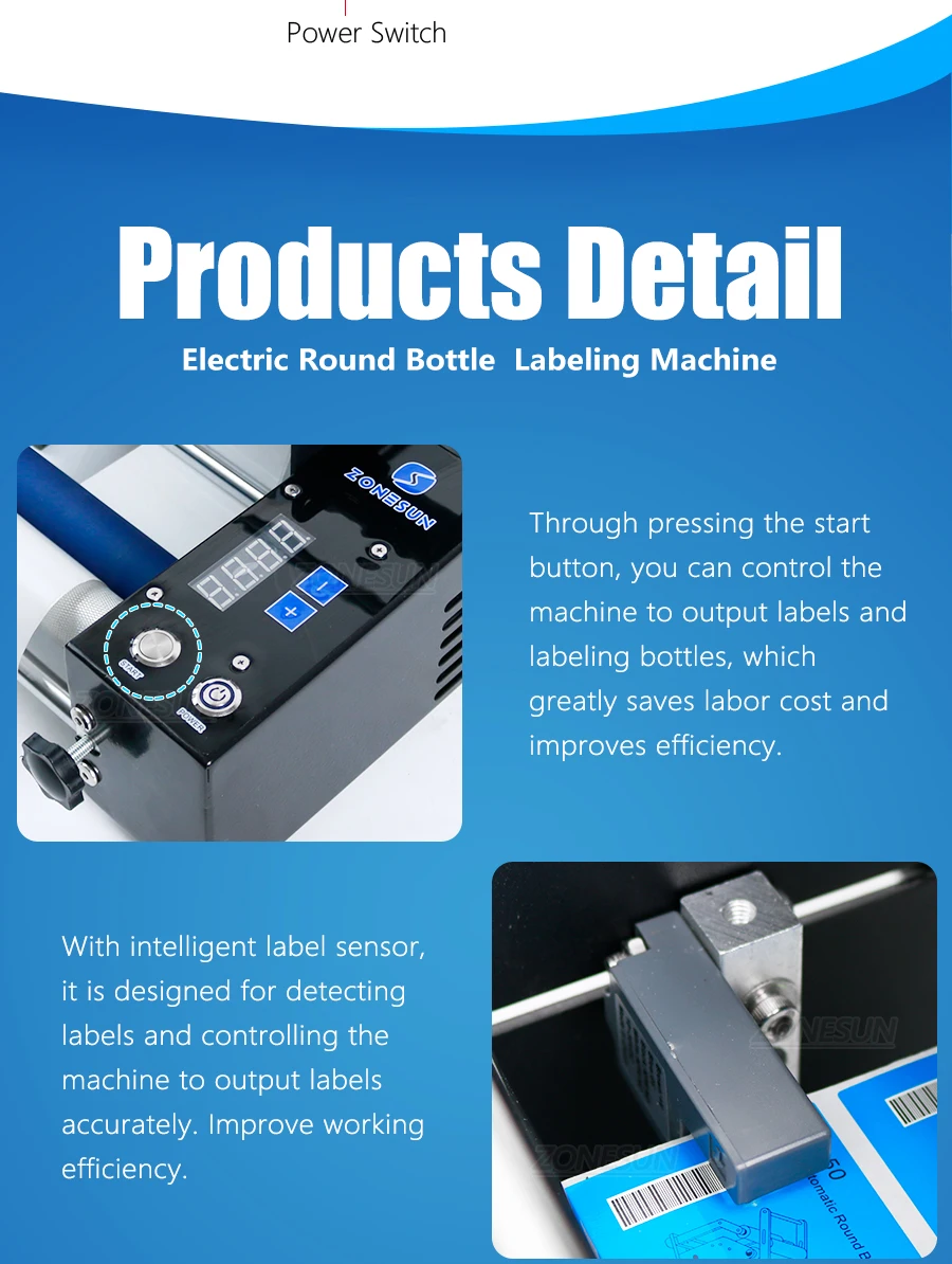 Эта машина подходит для наклеивания этикетокКруглые бутылки, Такие как капельницы бутылки, бутылки для напитков и т. Д.