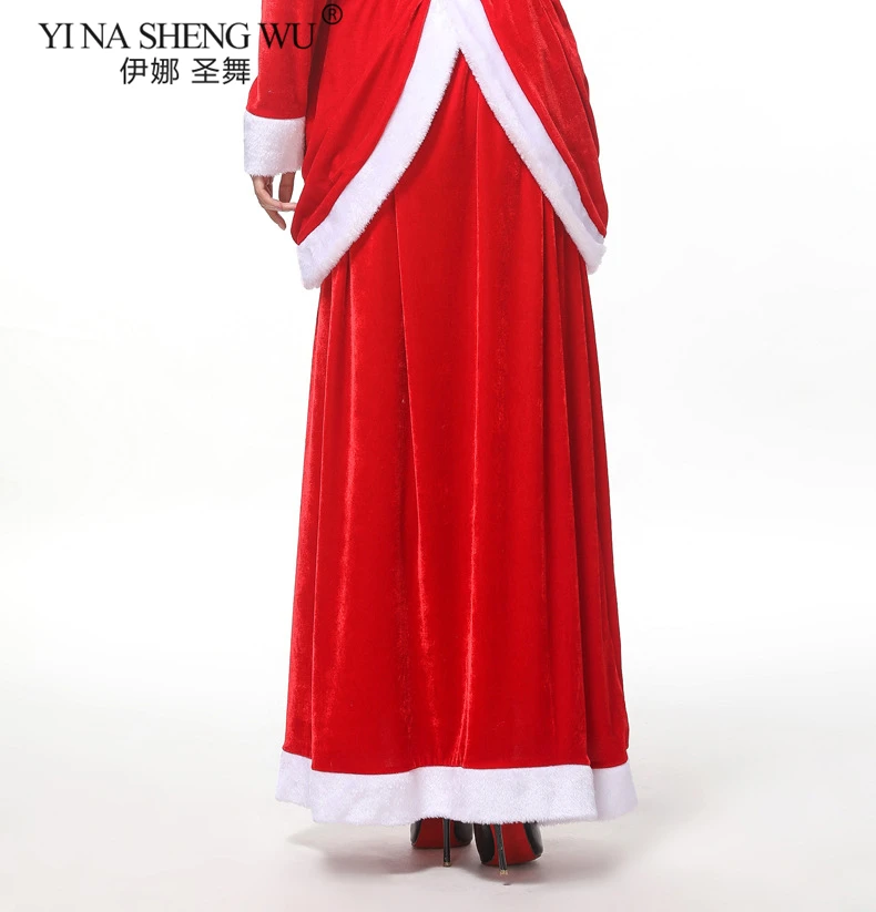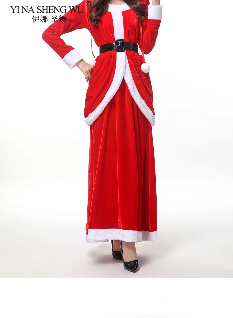 Женский Рождественский костюм с длинными рукавами для взрослых, красная юбка, вечерние платья для девочек, зимние платья, вечерние костюмы Санты