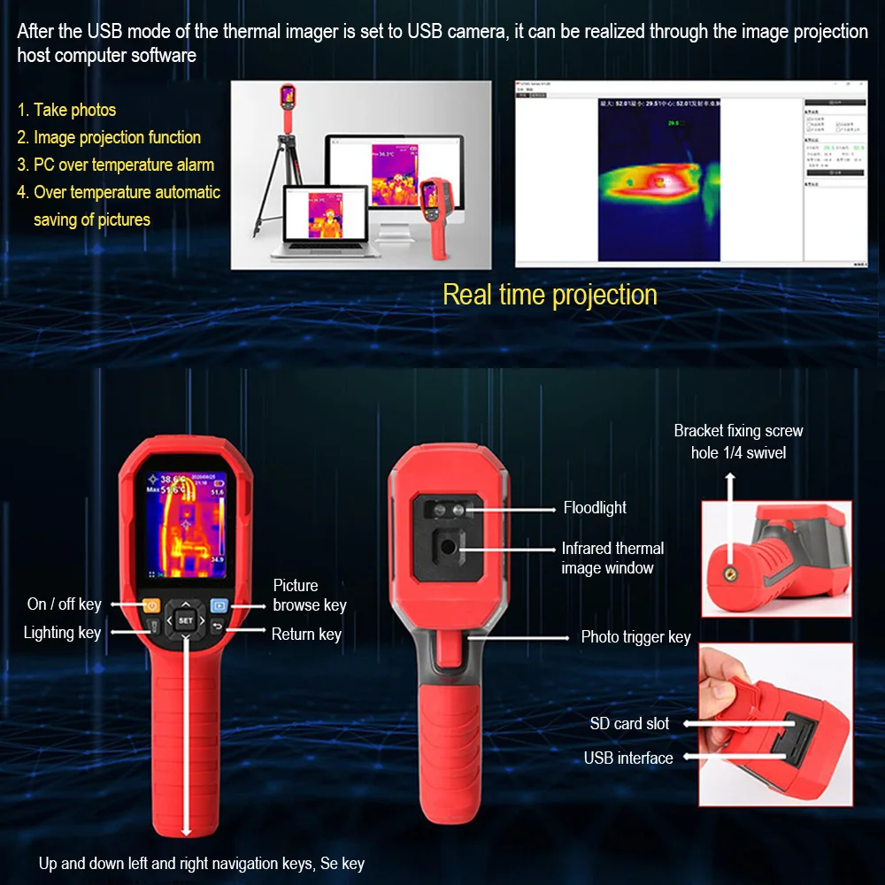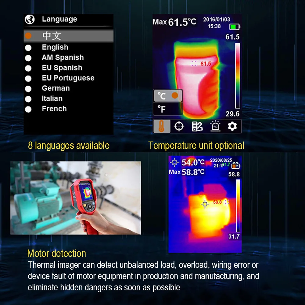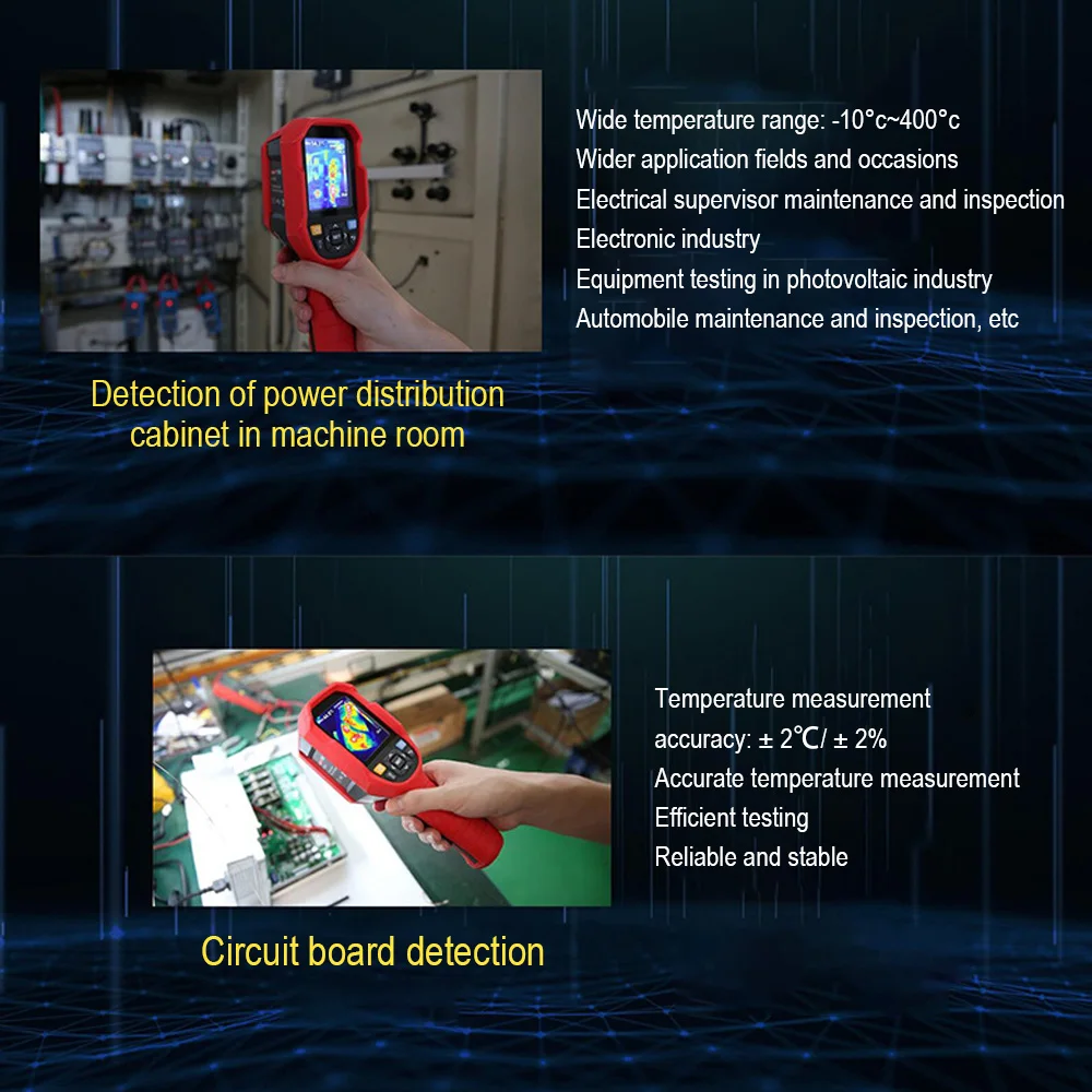 UNI-T классические тепловизоры разработаны с международными тепловыми датчиками. Утонченные функции и хорошая производительность видео являются удобными для пользователя. Прочный дизайн продукта IP65 и 2 м испытания на падение.
