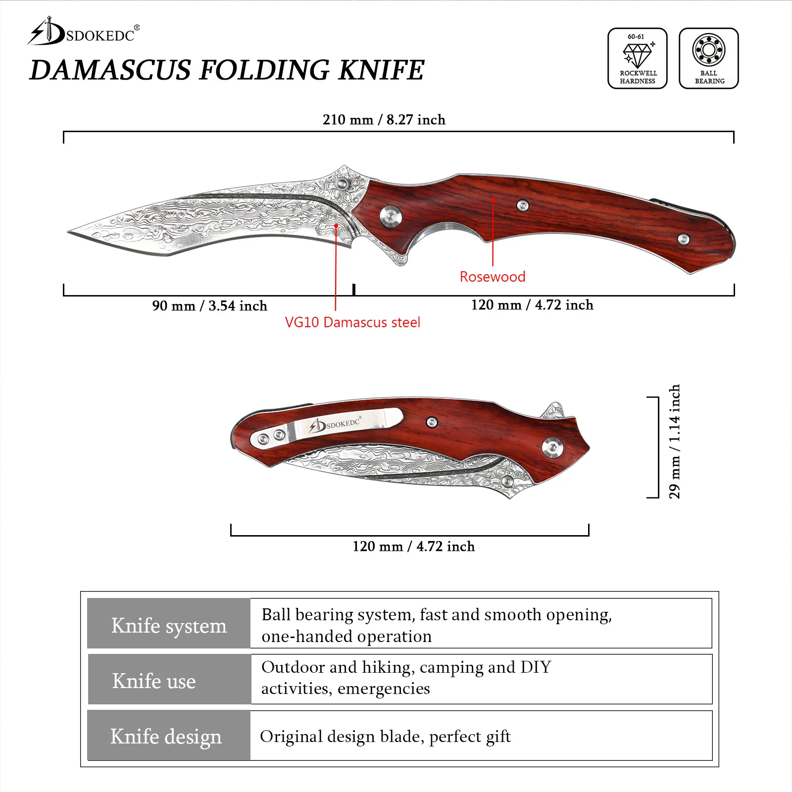 Примечание: натуральное дерево цвет зерна отличается, дамасская сталь зерна отличается, каждый из них уникален,
