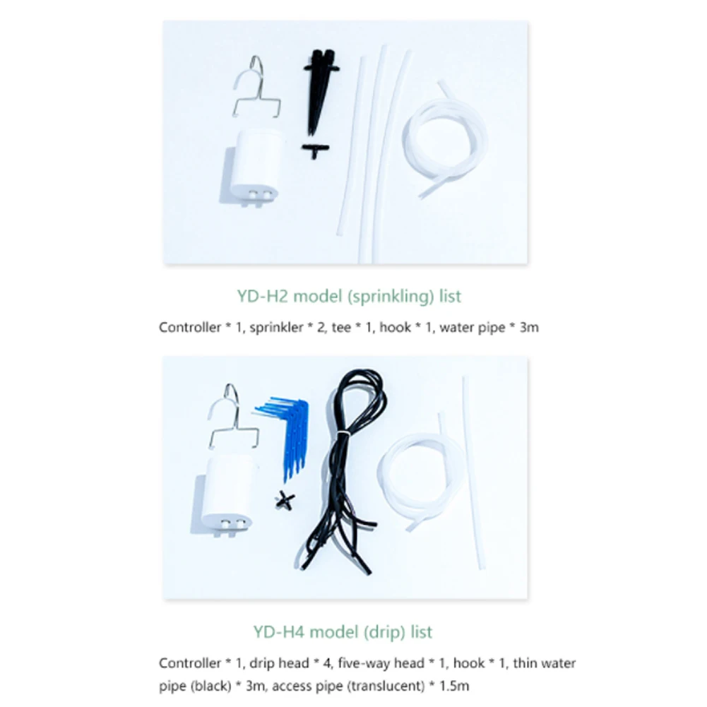 # C: регулятор * 1, прямая головка * 8, пятиходовая головка * 1, крючок * 1, тонкая водопроводная труба (черная) * 3 м, труба доступа (полупрозрачная) * 1,5 м