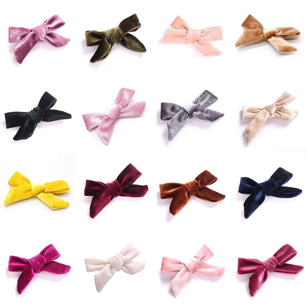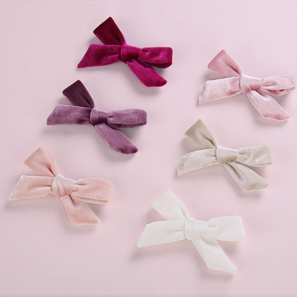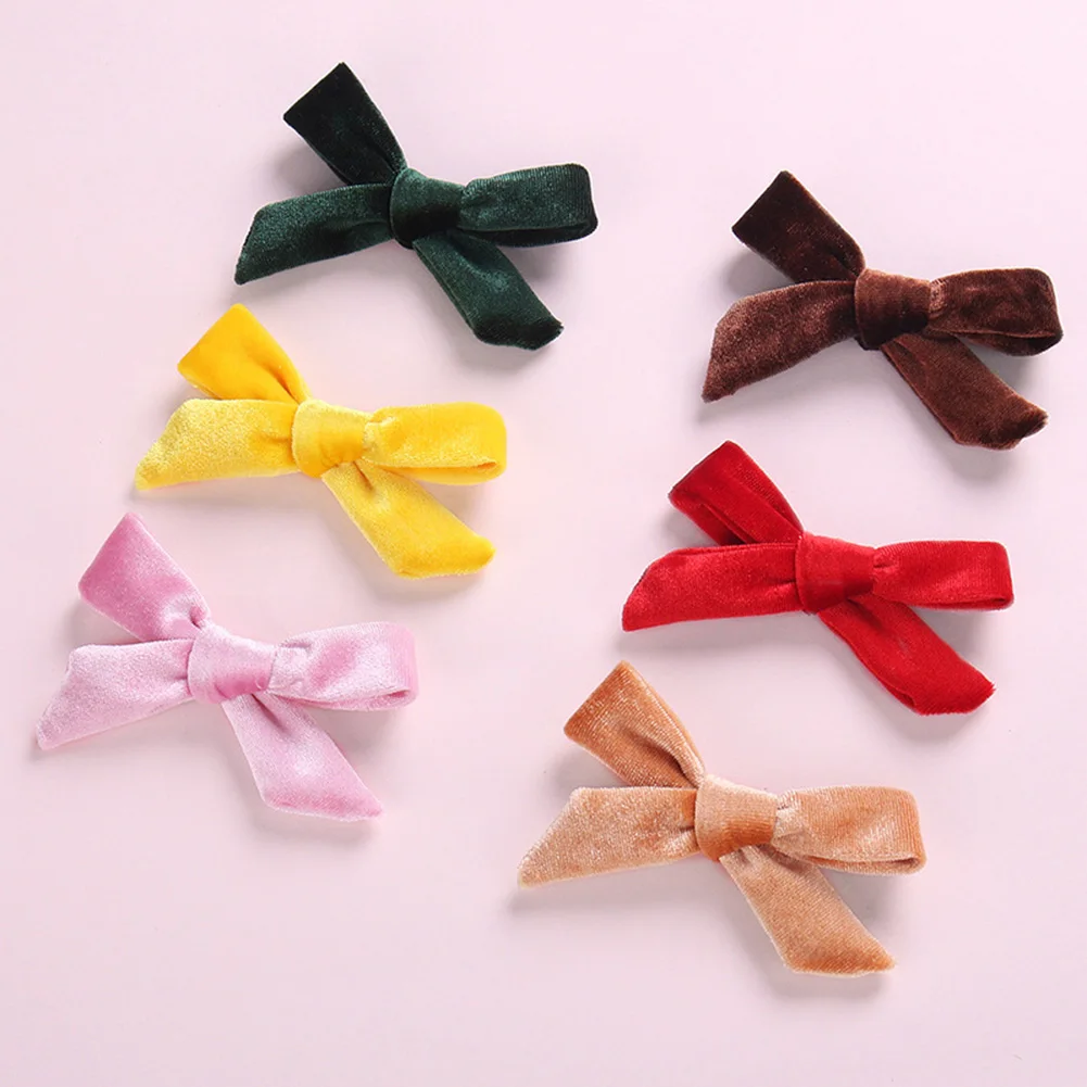 Детские мягкие бархатные заколки для волос с бантом, однотонные заколки для волос с перекрестным узлом, аксессуары для волос для девочек