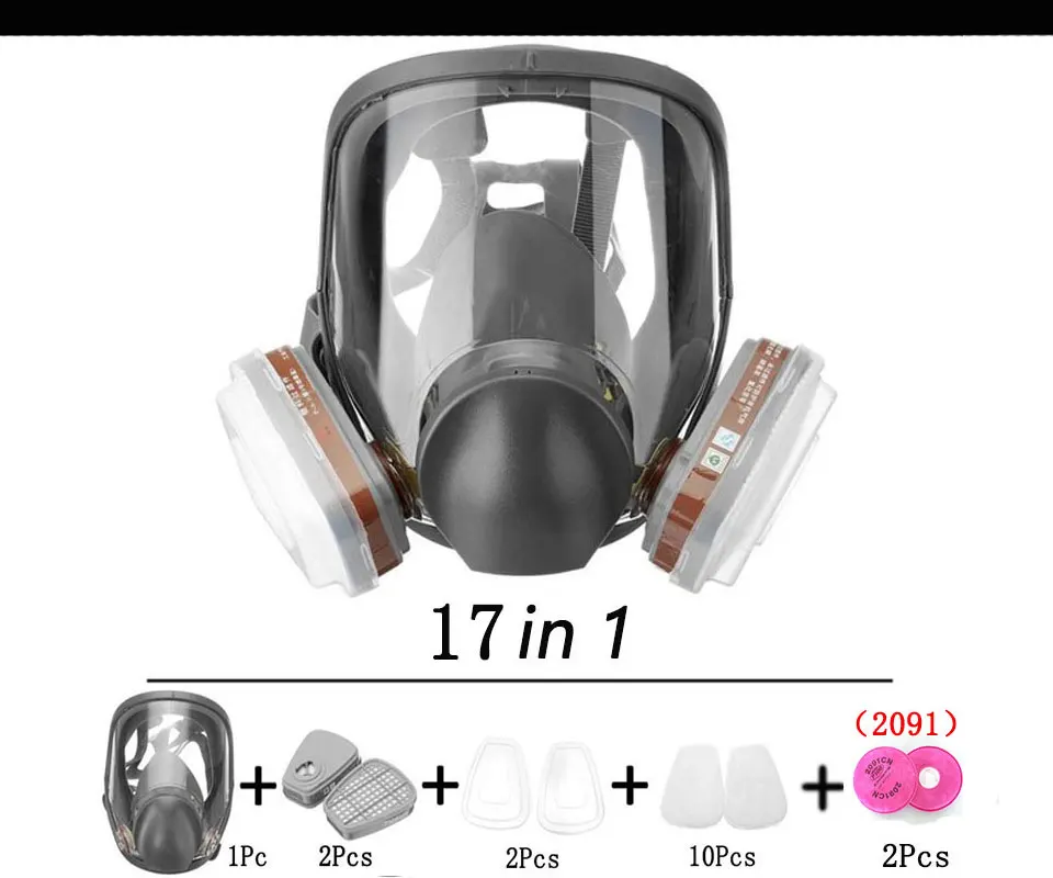 17 в 1 посылка включает в себя:1 x противогаз для лица2x6001 фильтрующая коробка2 x крышка фильтра10 х хлопковый фильтр2x2091 Тип пылезащитный хлопок